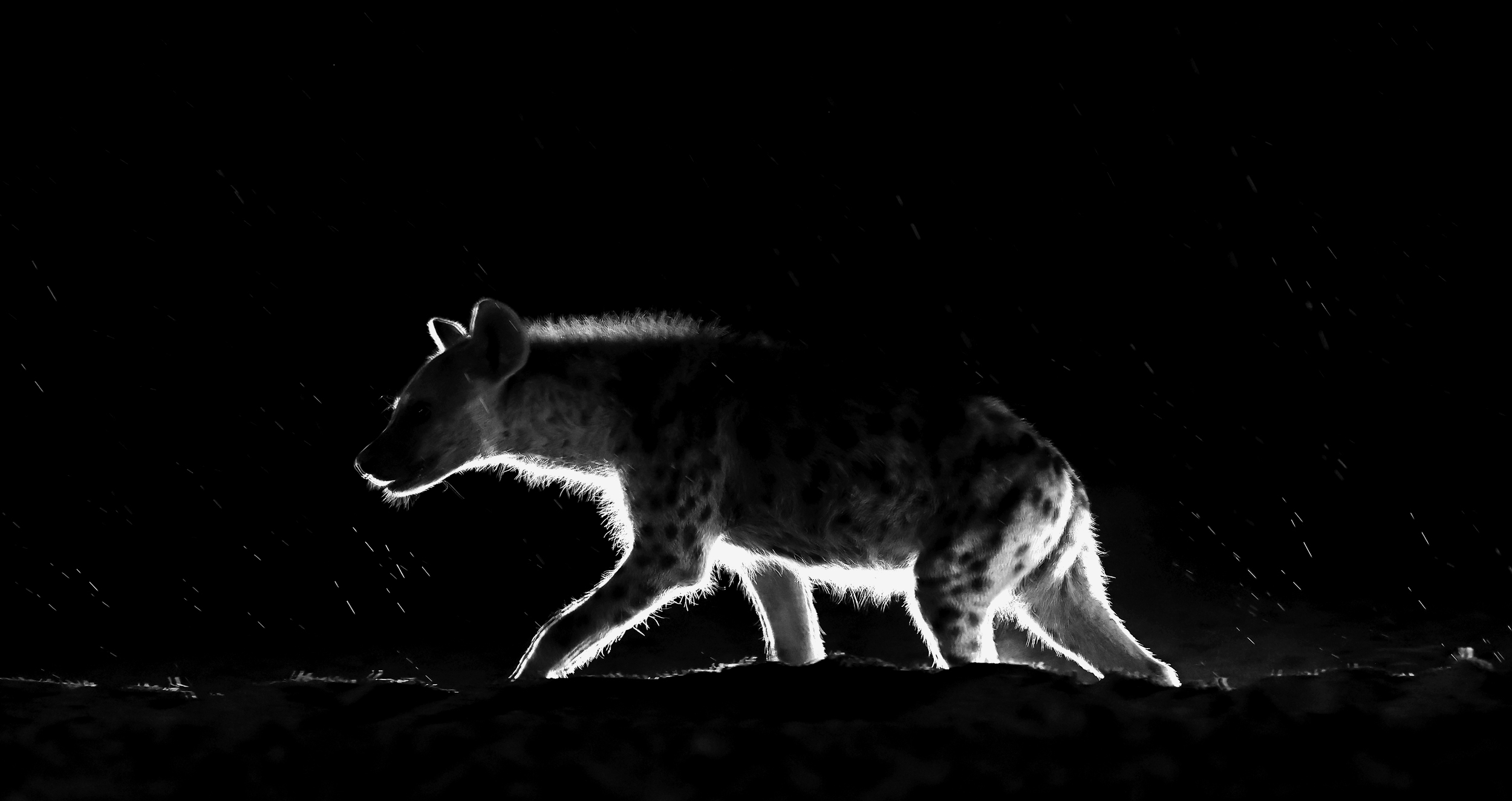 Вы сняли хищника в движении — контраст и силуэт переданы чётко, животное выделяется на тёмном фоне.