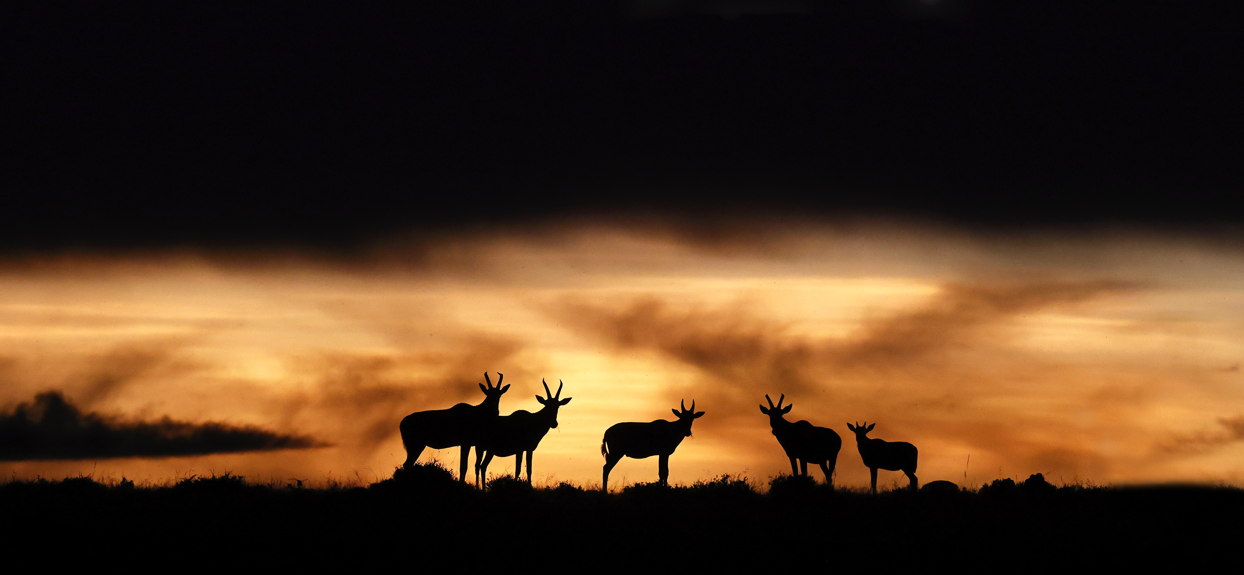 Вы хорошо уловили силуэтный контраст — животные чётко выделяются на фоне закатного неба, а композиция передаёт ощущение простора и дикой природы. Сильный кадр.
