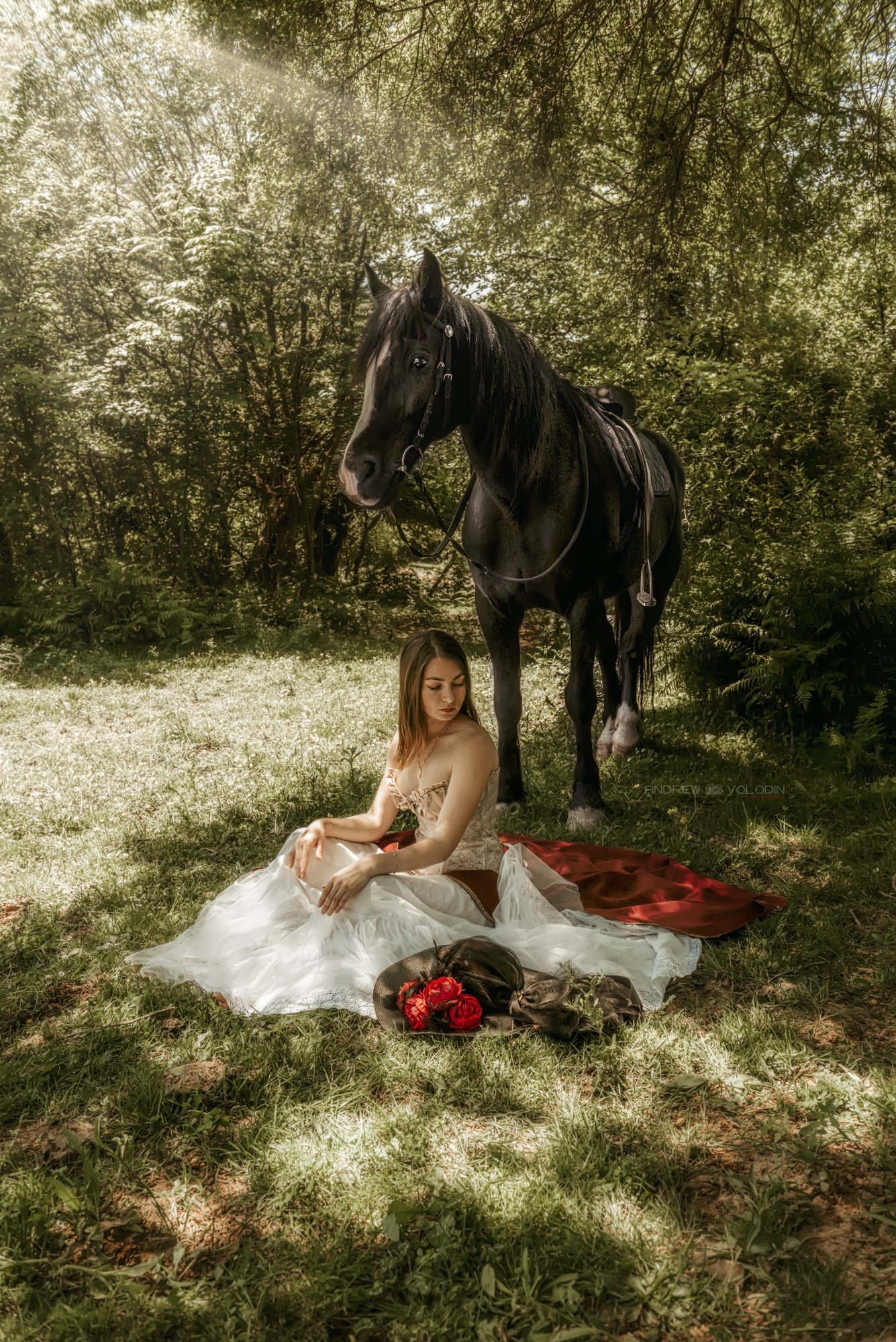 девушка конь отдых природа дерево прованс, Андрей Володин