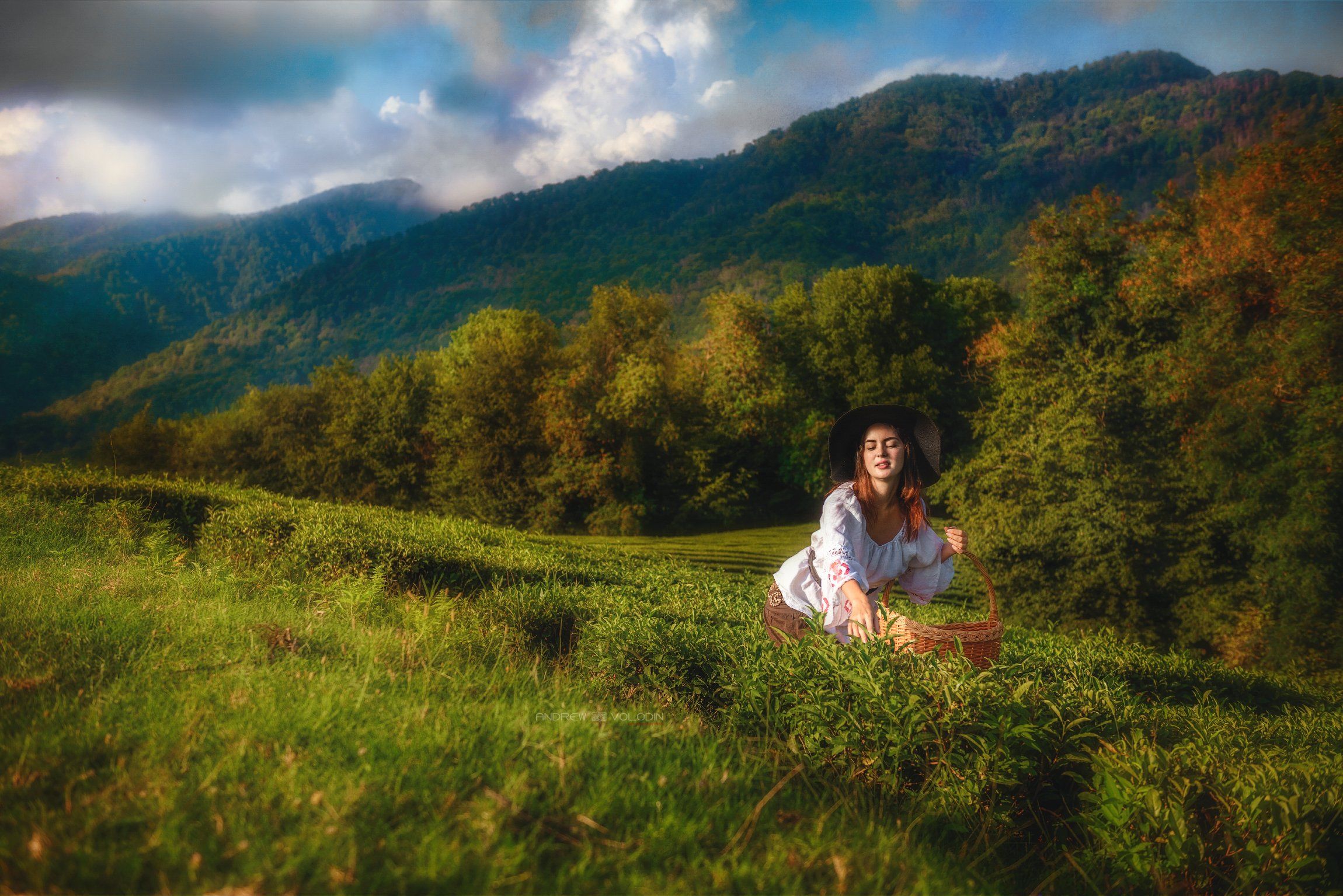 девушка чай корзина собирать плантации портрет поле лес природа, Андрей Володин