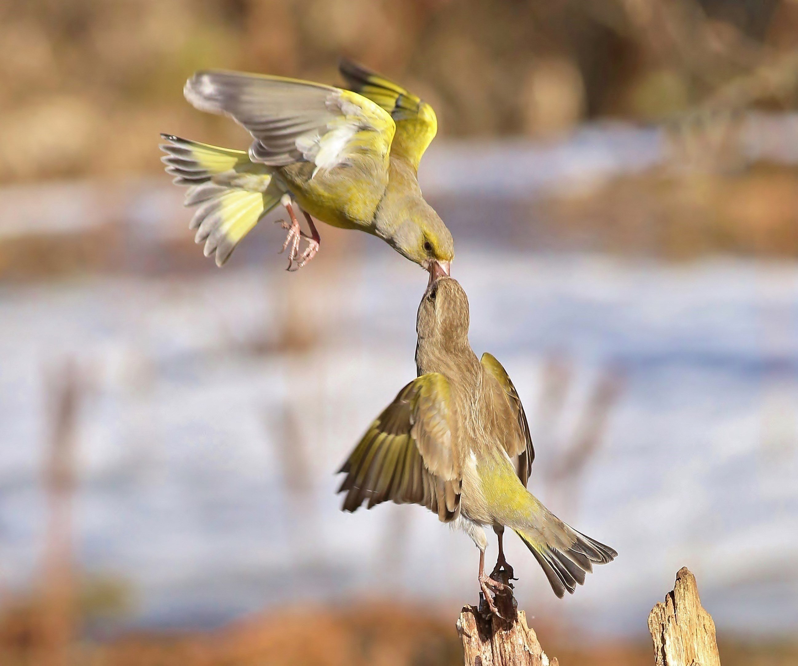природа ,птицы , лесные канарейки , встреча , весна , полёт, Андрей Головнев