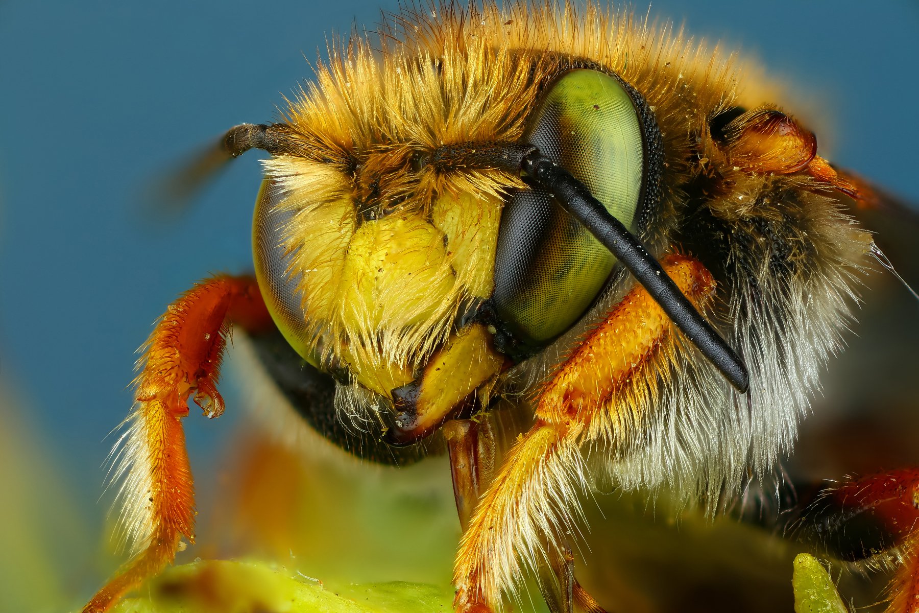 пчела,макро,природа,усы,цвет,зеленый,растение,голубой, Андрей Шаповалов