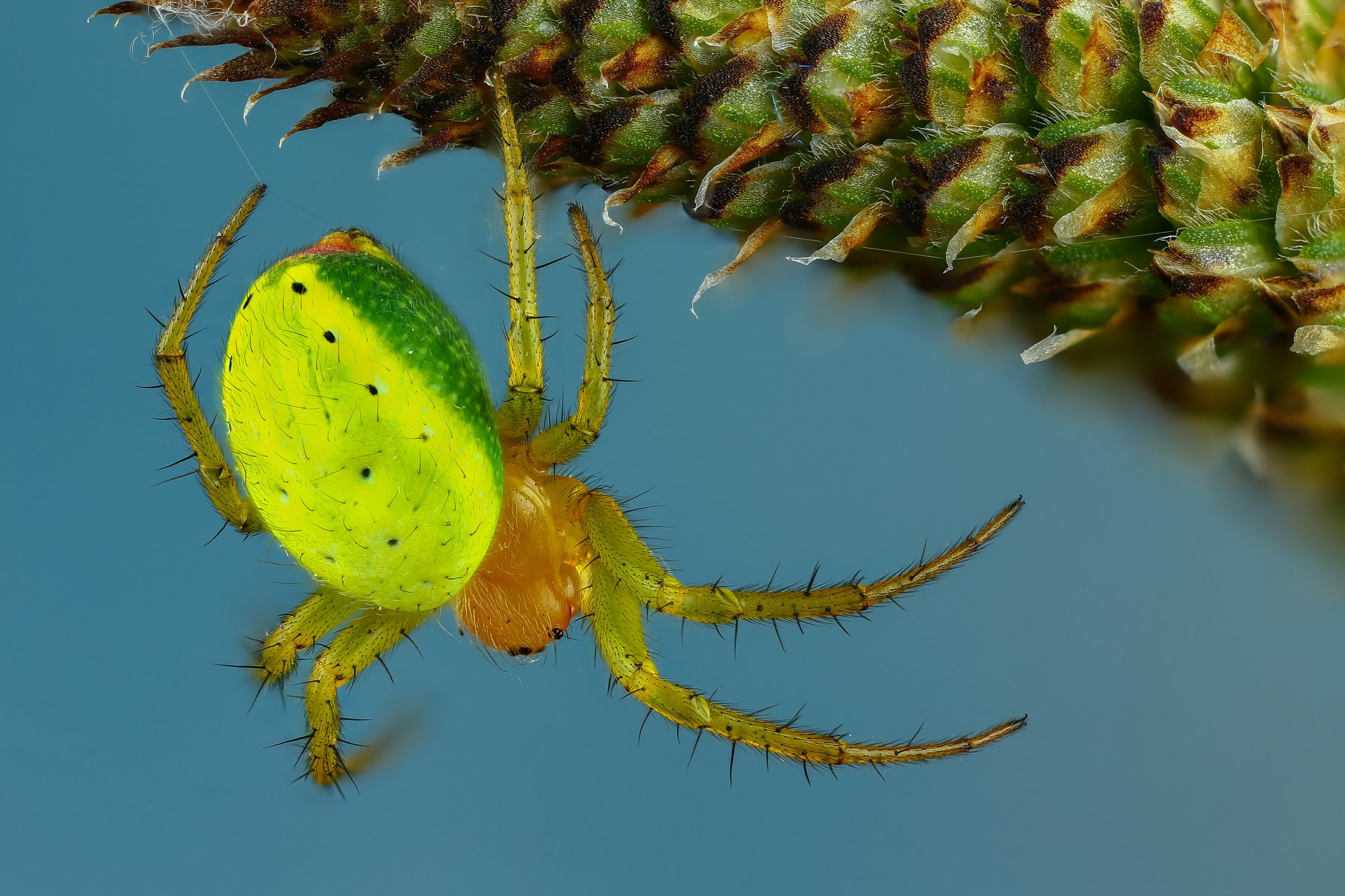паук,макро,природа,голубой,цвет,зеленый,растение, Андрей Шаповалов