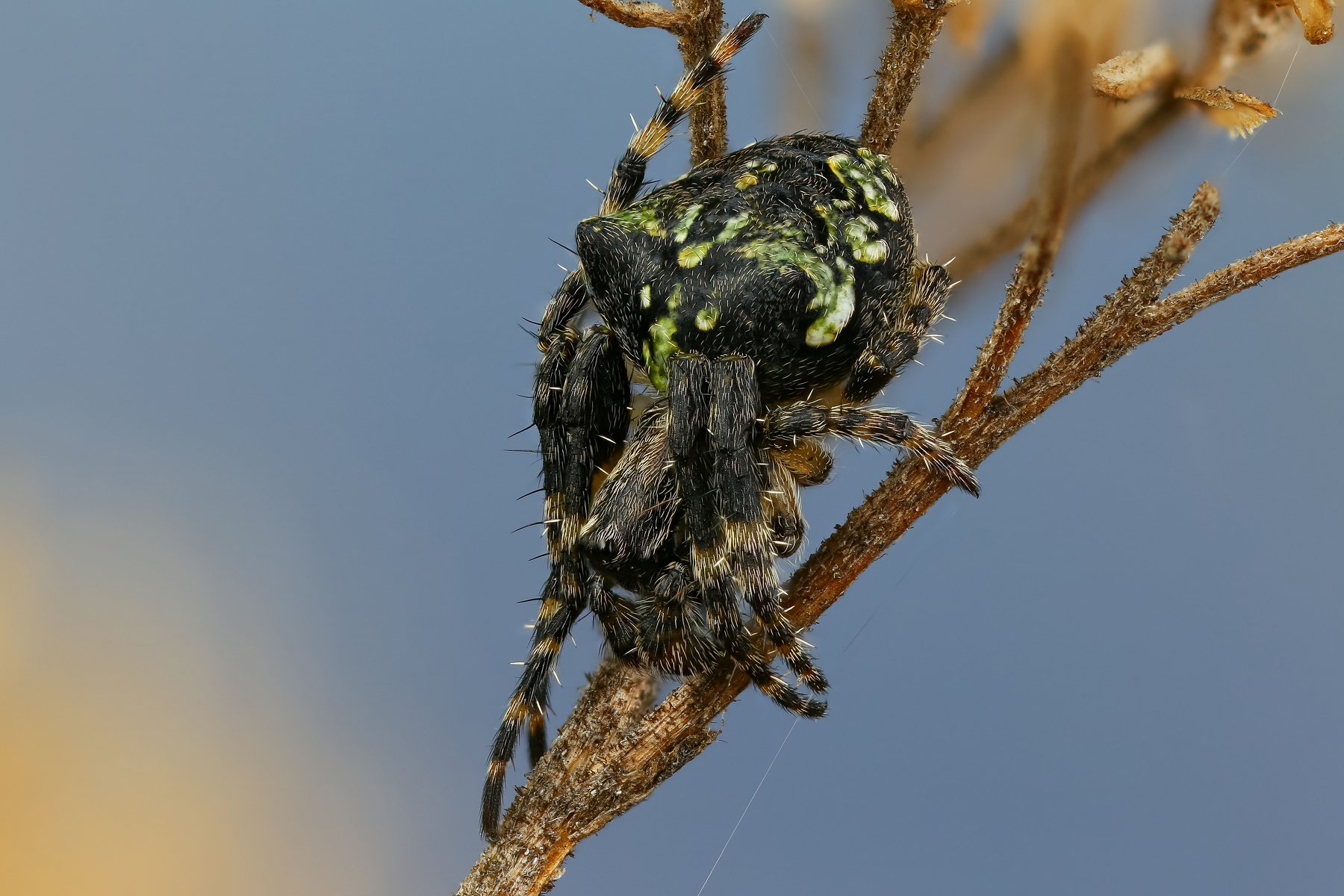 макро,природа,паук,цвет,коричневый,синий,черный,животное,растение, Андрей Шаповалов