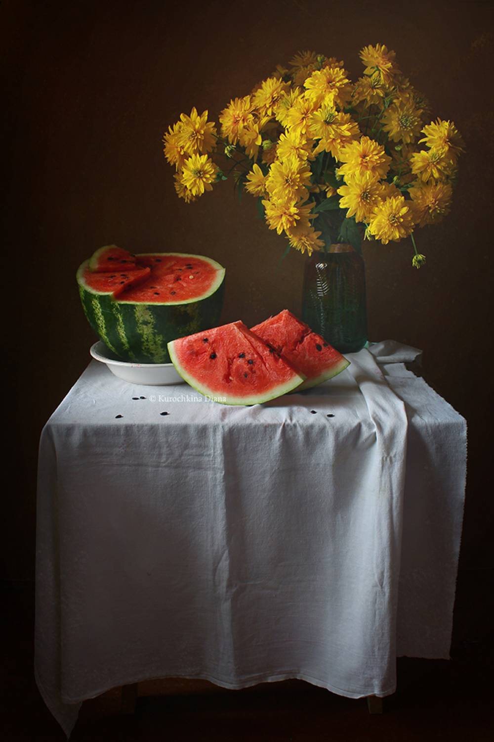 натюрмортарбузцветызолотые шары