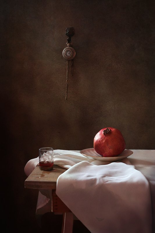 натюрморт, гранат, часы, рюмка, Курочкина Диана
