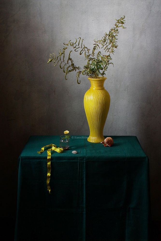 натюрморт, осень, желтый цвет, желтая ваза, сухой папоротник, Курочкина Диана