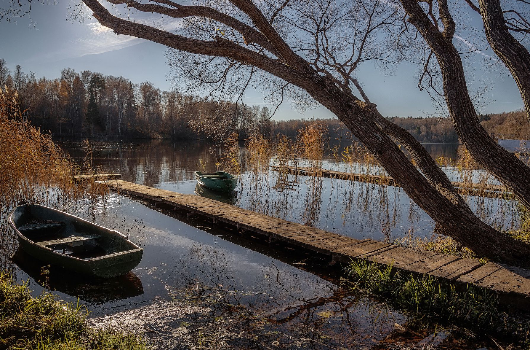 Осень, озеро, лодки, пирс, штиль, Сергей Аникин