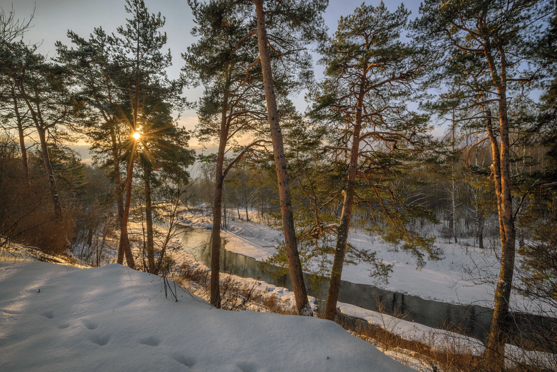 река, снег, сосны, зима, клязьма, солнце, Сергей Аникин