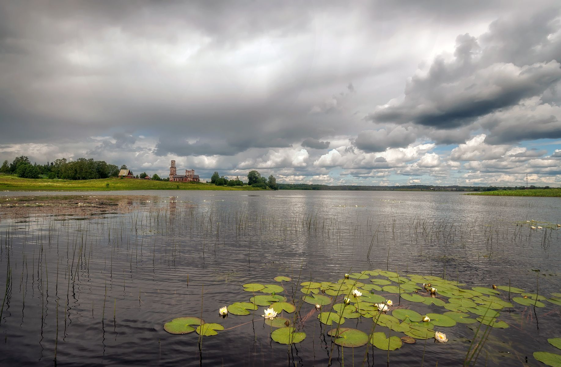 Озеро, стерж, кувшинки, церковь, лето, Сергей Аникин