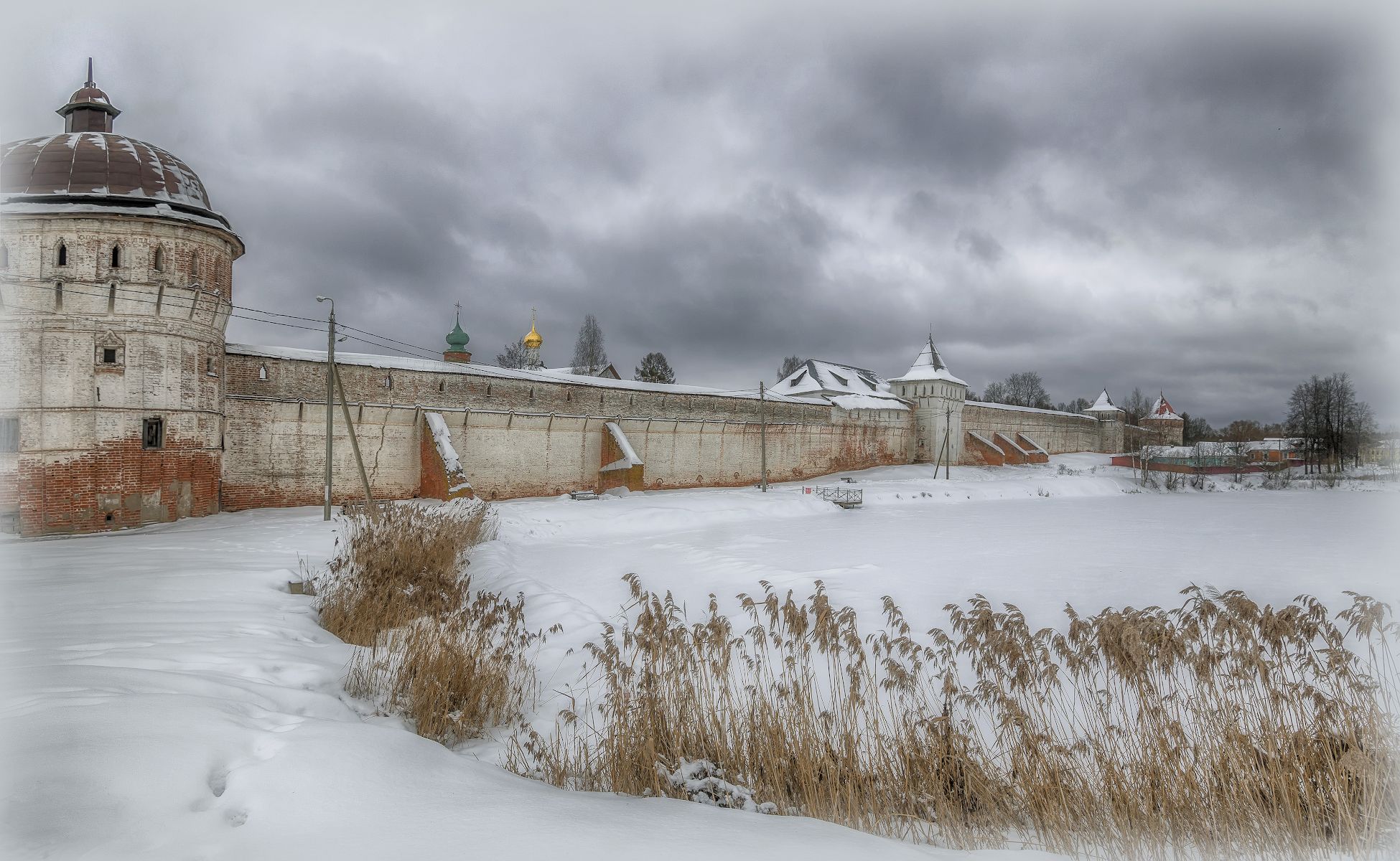 зима, снег, стена, башни, пруд, Сергей Аникин