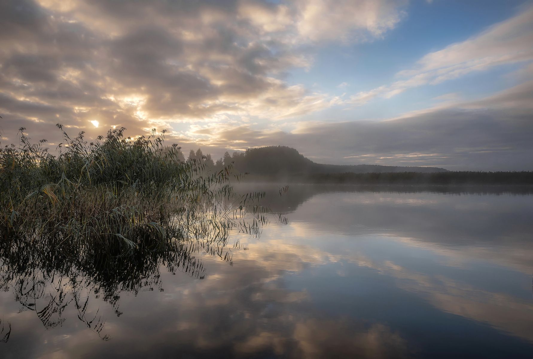 утро, рассвет, озеро, тростник, селигер, туман, Сергей Аникин