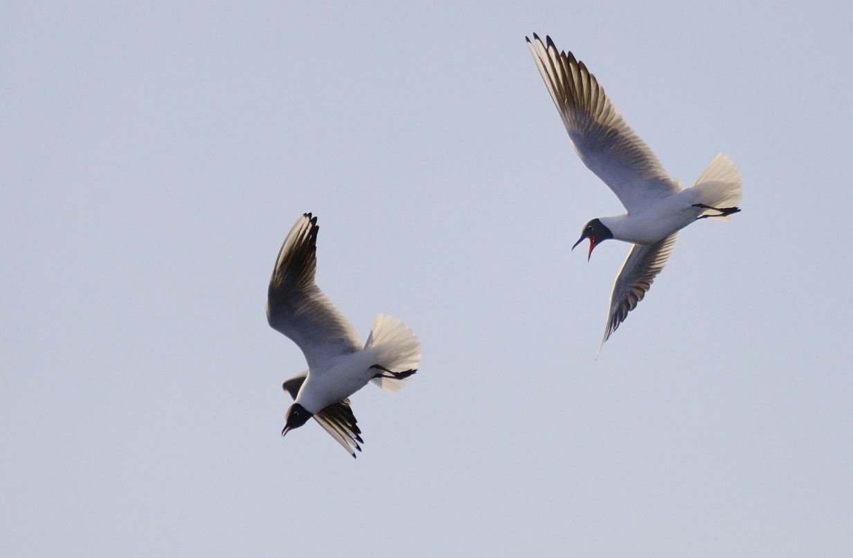 Озерные чайки на гнездовании крикливы и агрессивны, чуть что не так и начинаются воздушные битвы, бескровные и побольшей части бесконтактные.