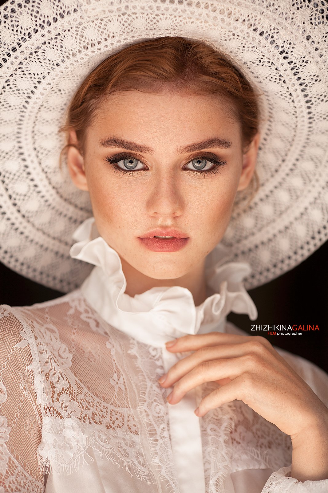 В кадре — женщина, окутанная атмосферой ретро-Парижа. Белая шляпа с тонким узором, кружево, нежный воротник — всё говорит о тонком вкусе и внутренней грации. Глаза, пронзительные и задумчивые, уводят в глубину души. Фотография — не просто снимок, а поэма о женственности, тишине и силе. Каждый элемент — часть сюжета, где прикосновение к ткани становится метафорой связи с собой. Работа Галины Жижикиной — это искусство, где свет, тень и эмоция сливаются в единый образ.