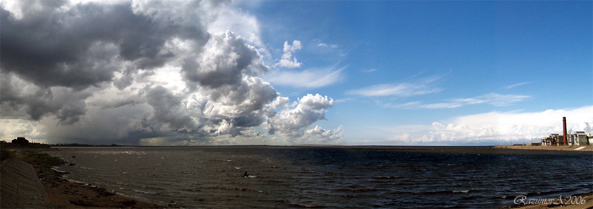 Снято за полчаса до начала настоящей бури. На Канонерском острове в Санкт-Петербурге. Еле успела добраться домой и начался просто ураган... Панорама из пяти вертикальных кадров. Снято с рук.