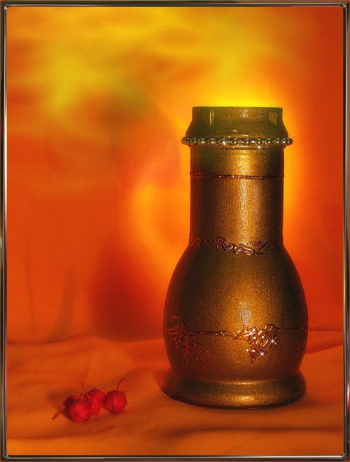 "Дым" на ЗП - всего лишь игра света ("нарисован" фонариком), а сама вазочка - ещё одно моё хобби - бывшая одноразовая мельничка для специй "Cotami". ;))