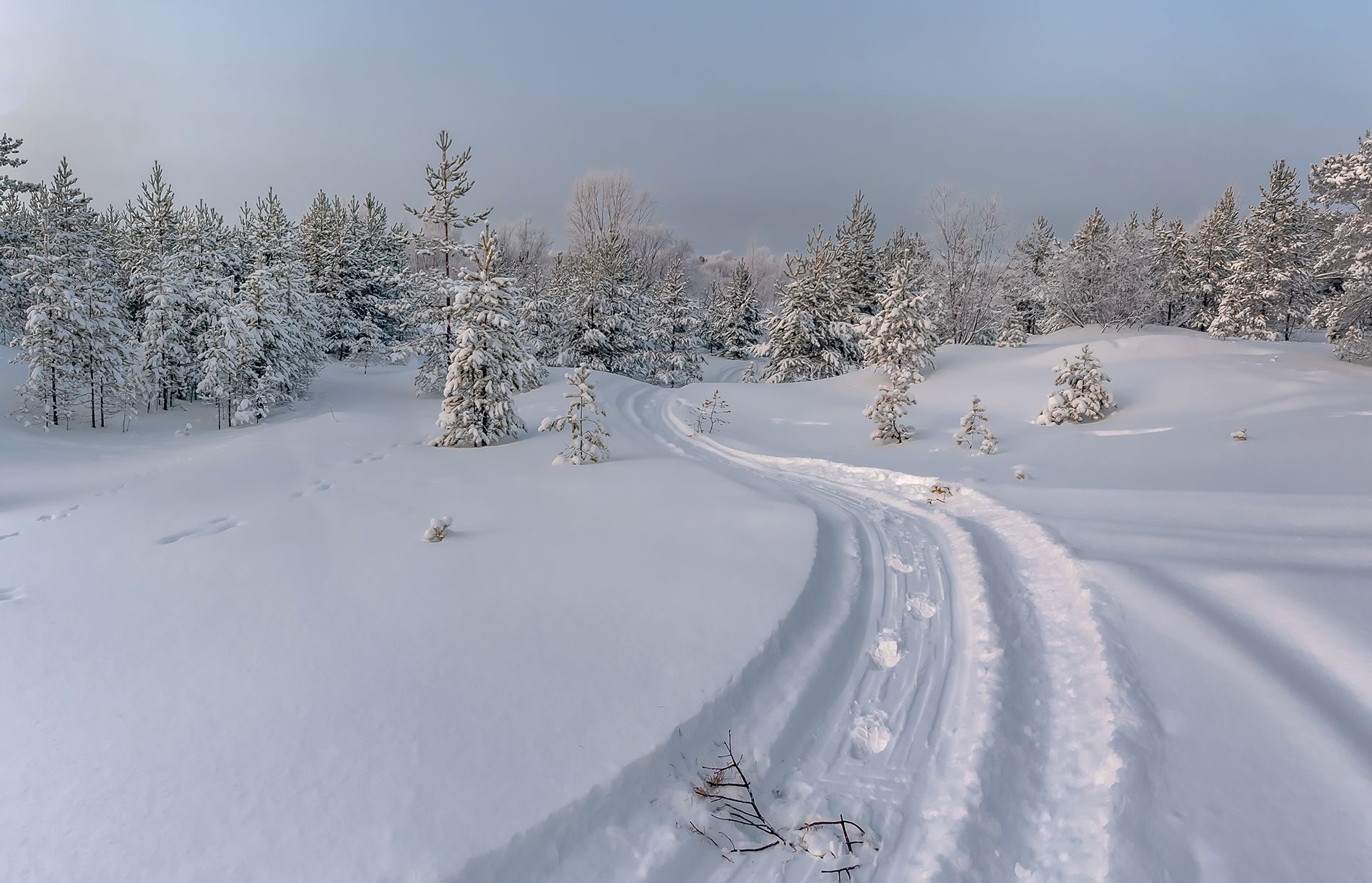 снег, зима, следы, лес, сосны, иней, Анкудинов Леонид