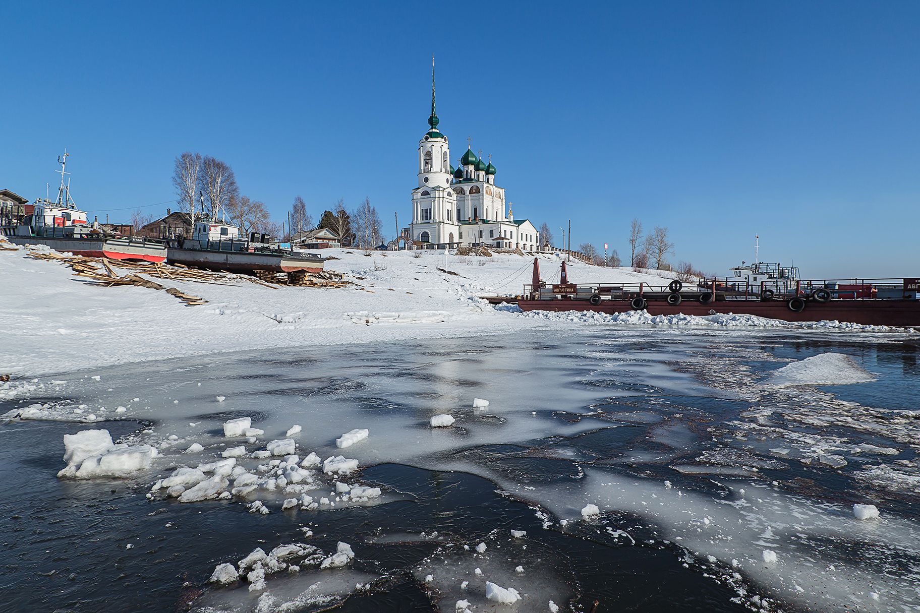 сольвычегодск, собор, строгонов, берег, катер, баржа, лёд,, Анкудинов Леонид