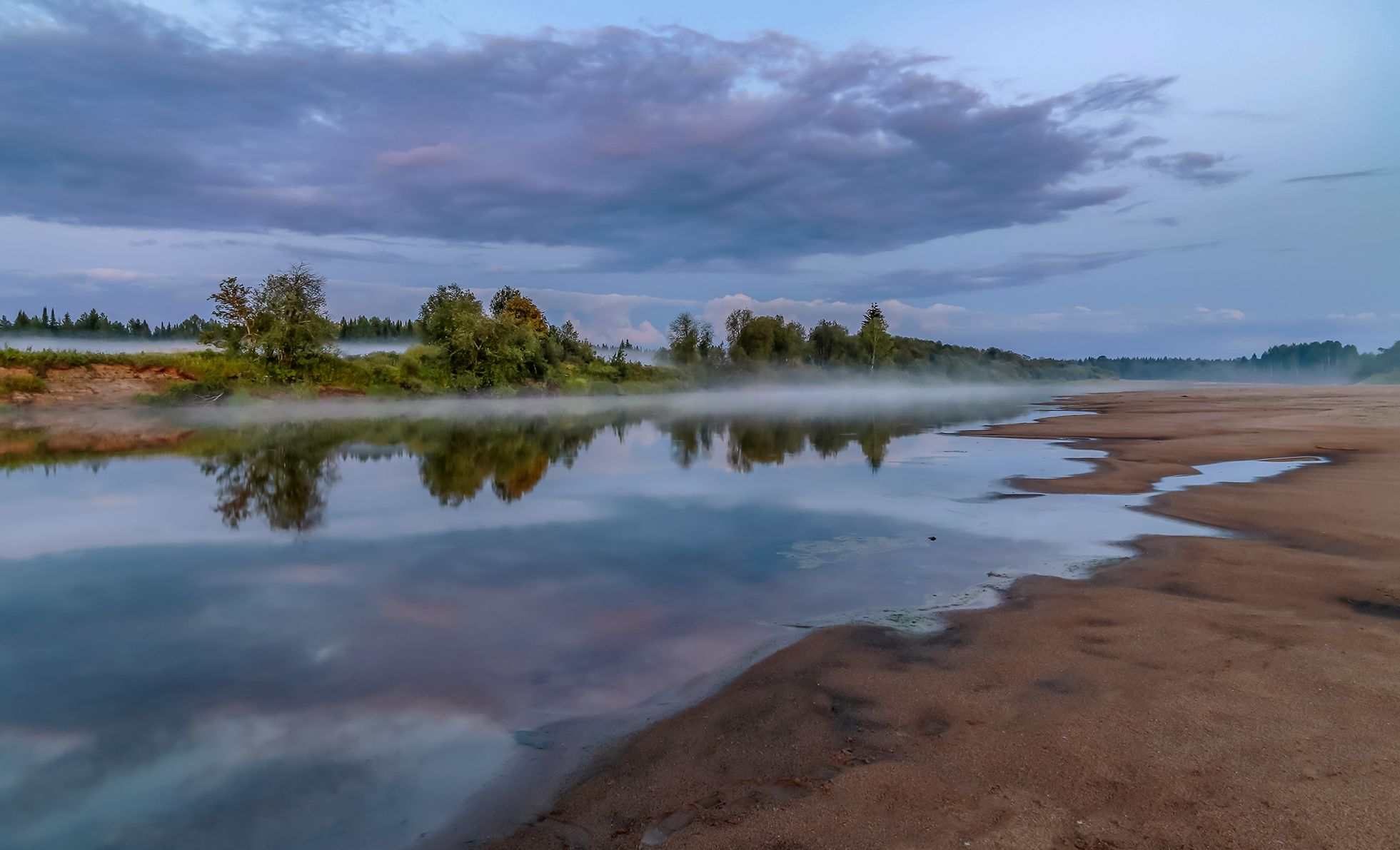 река, туман, вечер, отражение,, Анкудинов Леонид