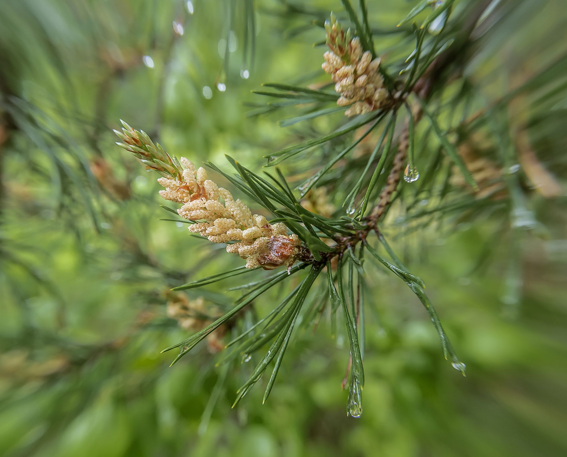 сосна, цвет, капли, ветка, зелень, Анкудинов Леонид