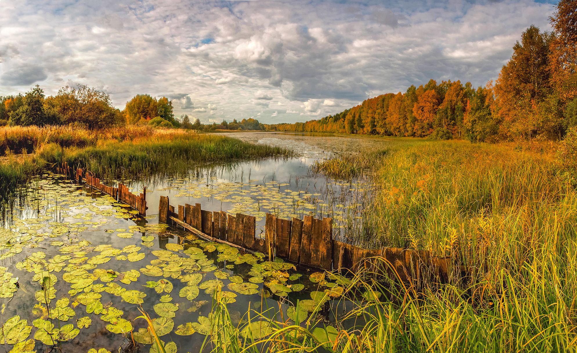 озеро, преграда, забор, трава, осень., Анкудинов Леонид