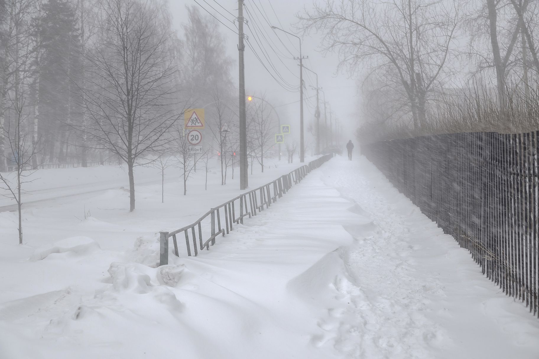 снег, метель, сугроб, человек, пешеход, силуэт, тротуар, Анкудинов Леонид