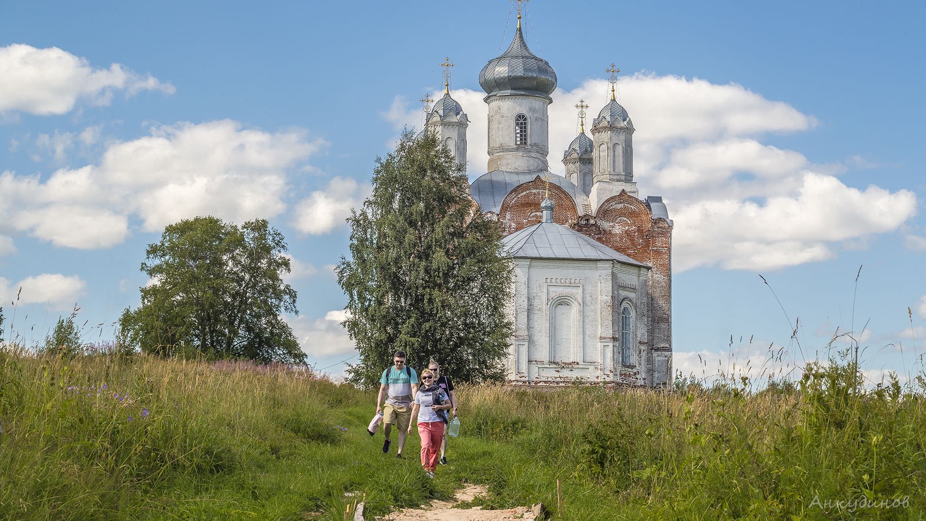 люди, церковь, лето, трава, тропинка, пустошь., Анкудинов Леонид