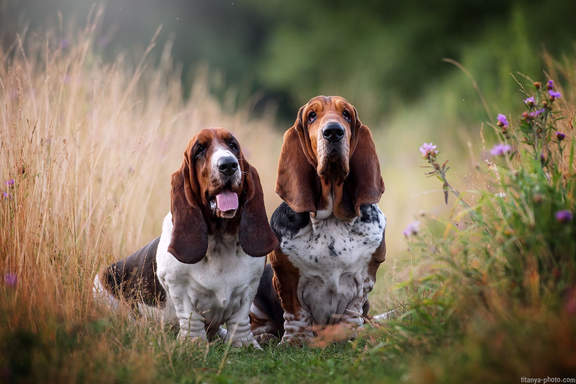 бассет, хаунд, собаки, двое, портрет, поле, цветы, бассеты, Анна Титова