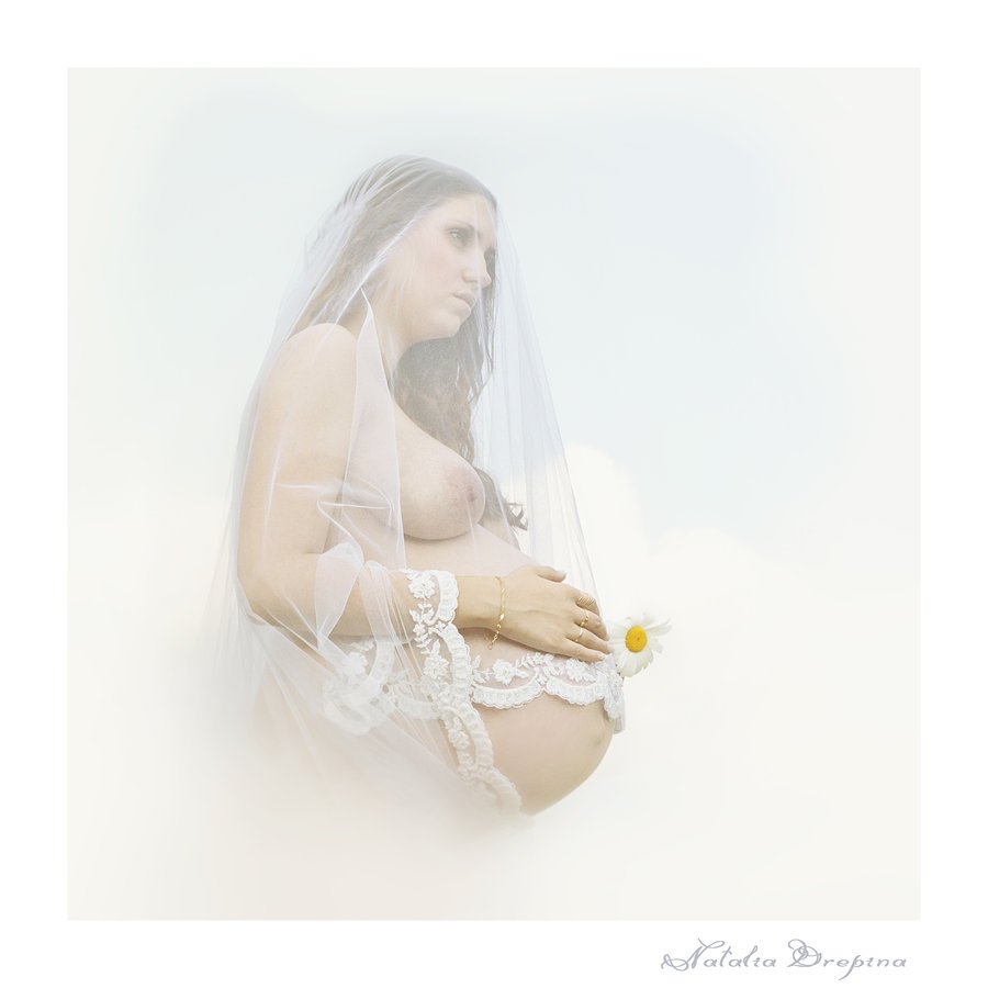 skies, mother, pregnancy, stomach, veil, bride, nude, woman, cloud, light, blessing, daisy, беременность, Natalia Drepina