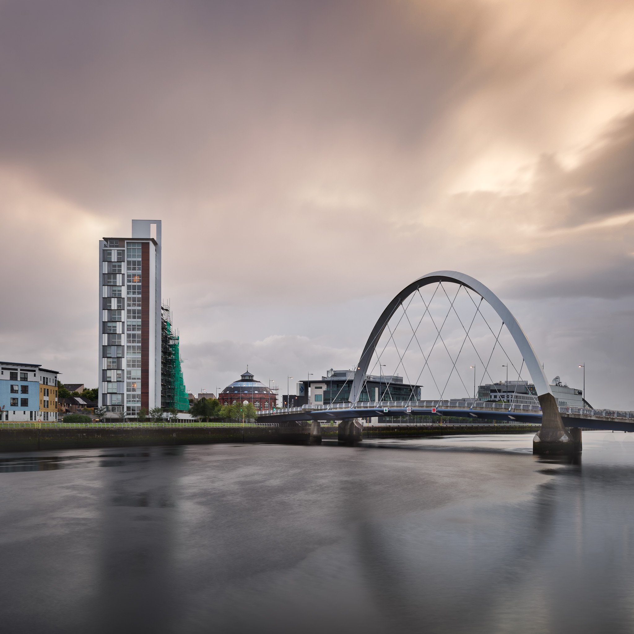 arc, arch, architectural, architecture, blue, bridge, britain, building, city, cityscape, clyde, construction, contemporary, curve, dusk, engineering, europe, european, evening, facade, glasgow, iconic, kingdom, landmark, metal, modern, monument, overcast, Andrey Omelyanchuk
