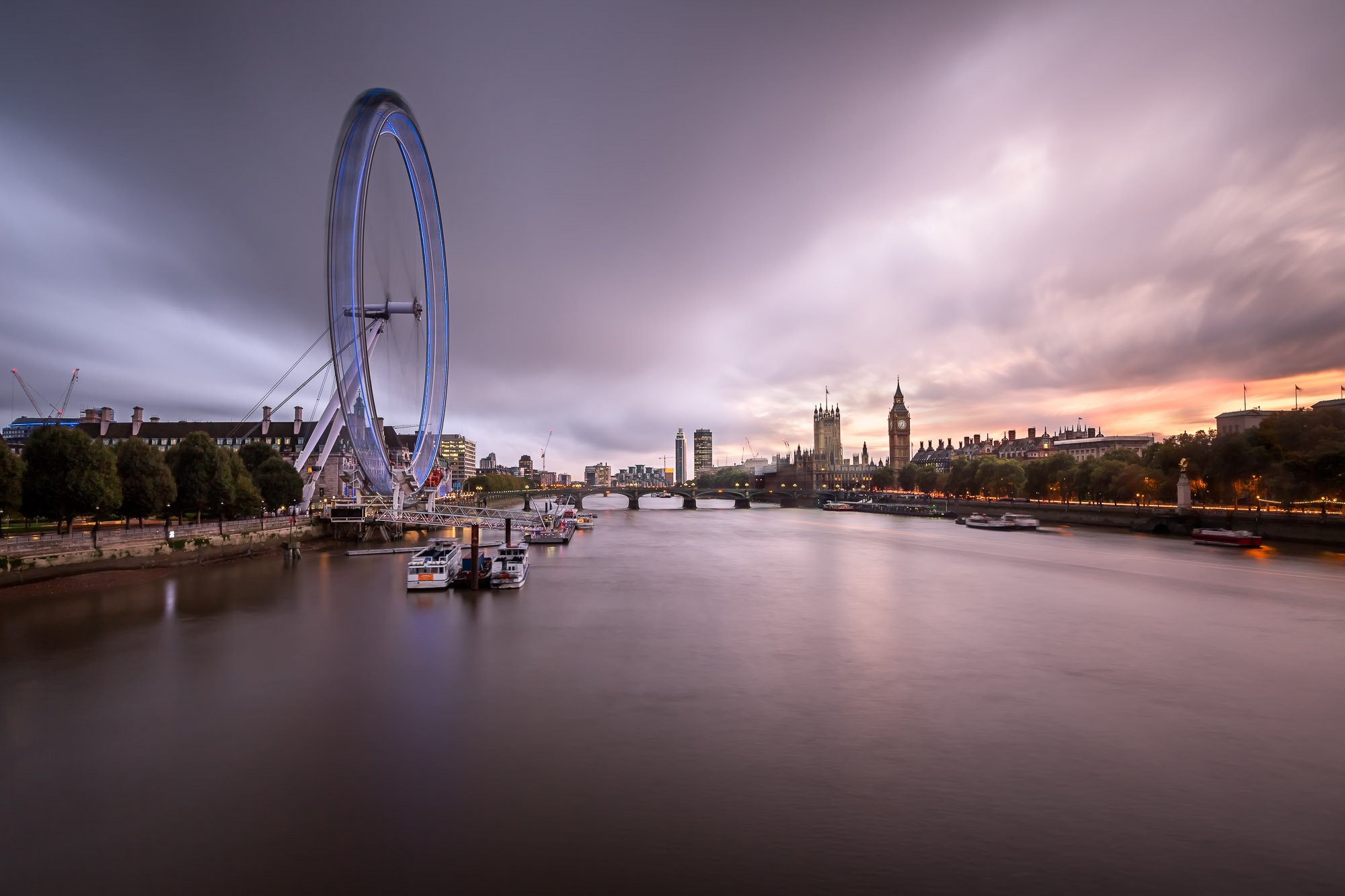 River Thames, Westminster Palace and London Skyline in the Evening, United Kingdom