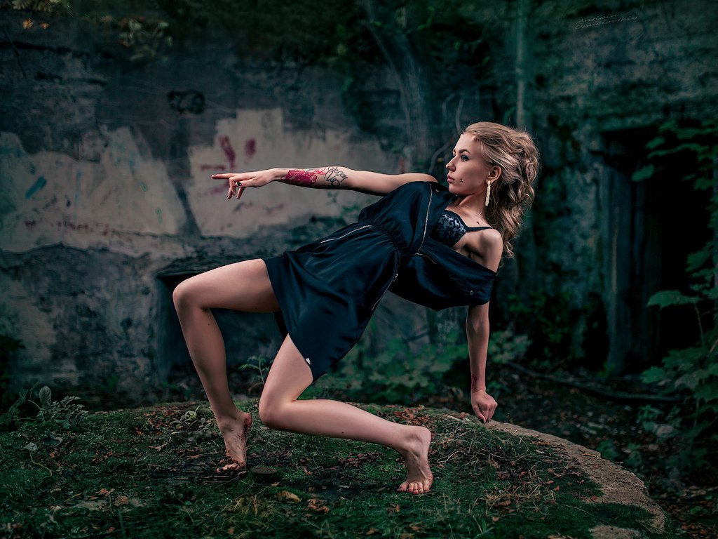 только вот слишком уж заметно место, где, когда-то было нечто, на что опирается девушка ...