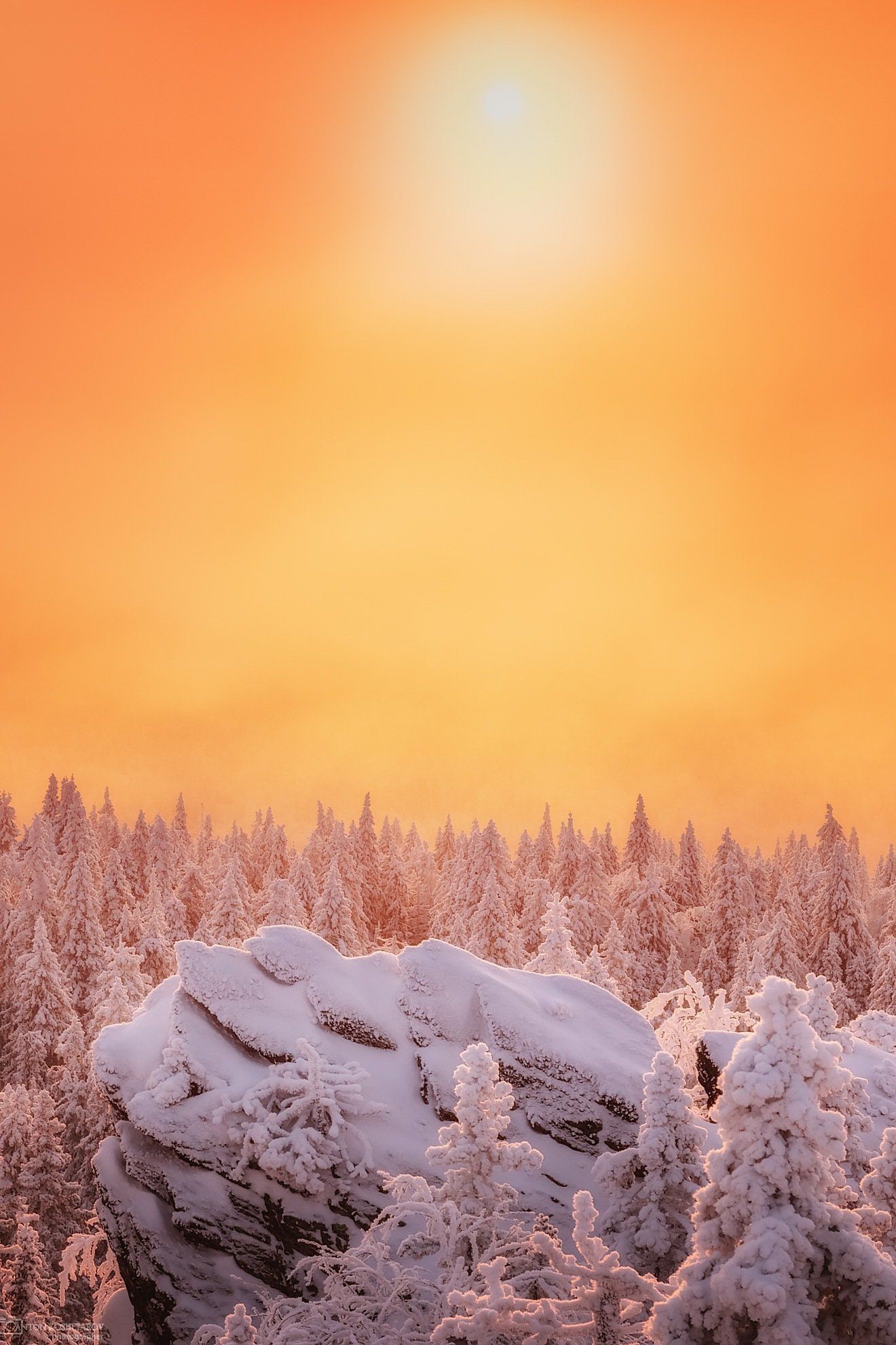 таганай, южный урал, златоуст, горы, зима, вечер, снег, деревья, вершины, синий час, вечер, златоуст, Антон Кошетаров