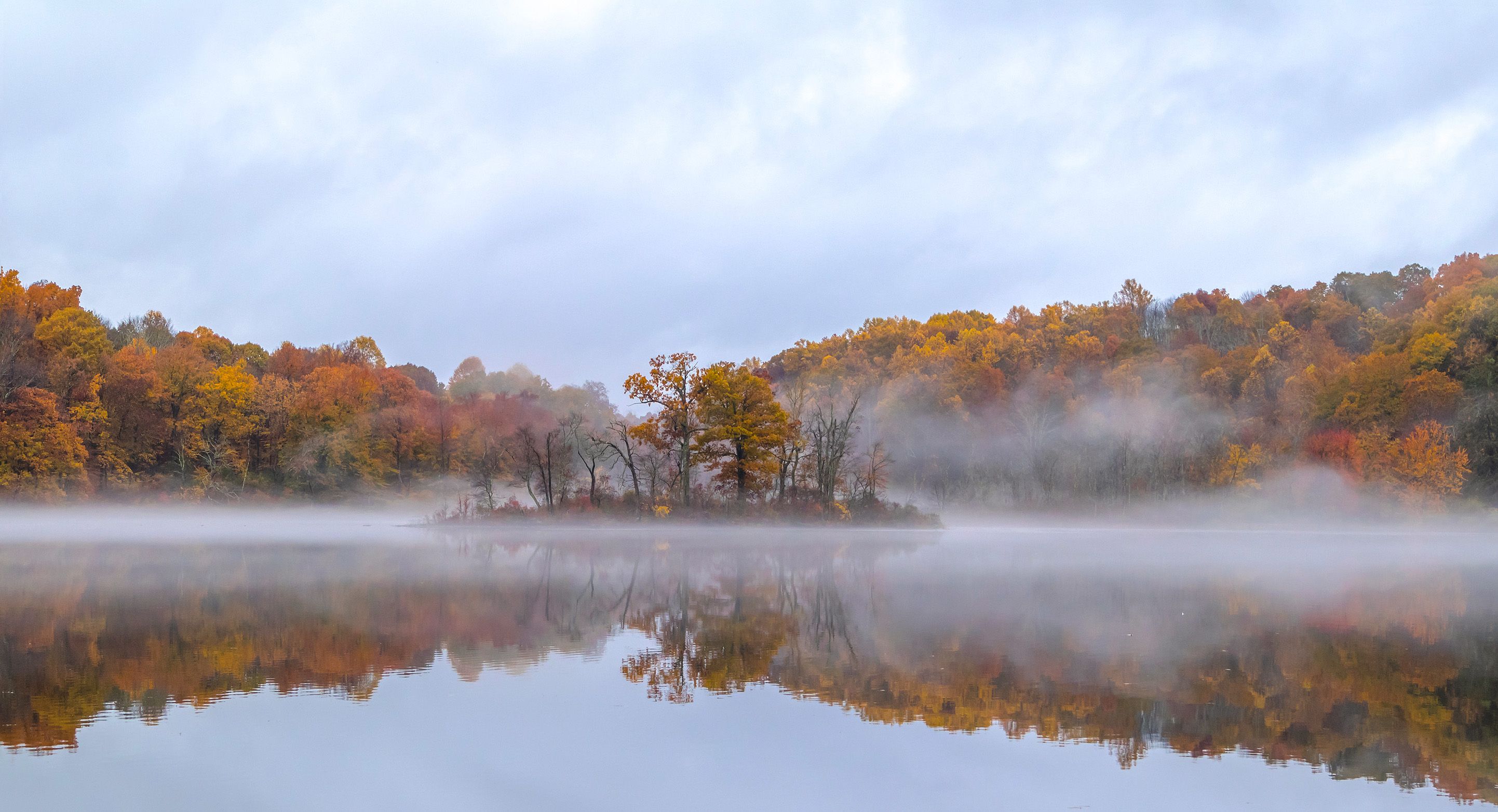 природа,осень,пейзаж,деревья,отражения,озеро,вода,листья, туман,, Антонина Яновска