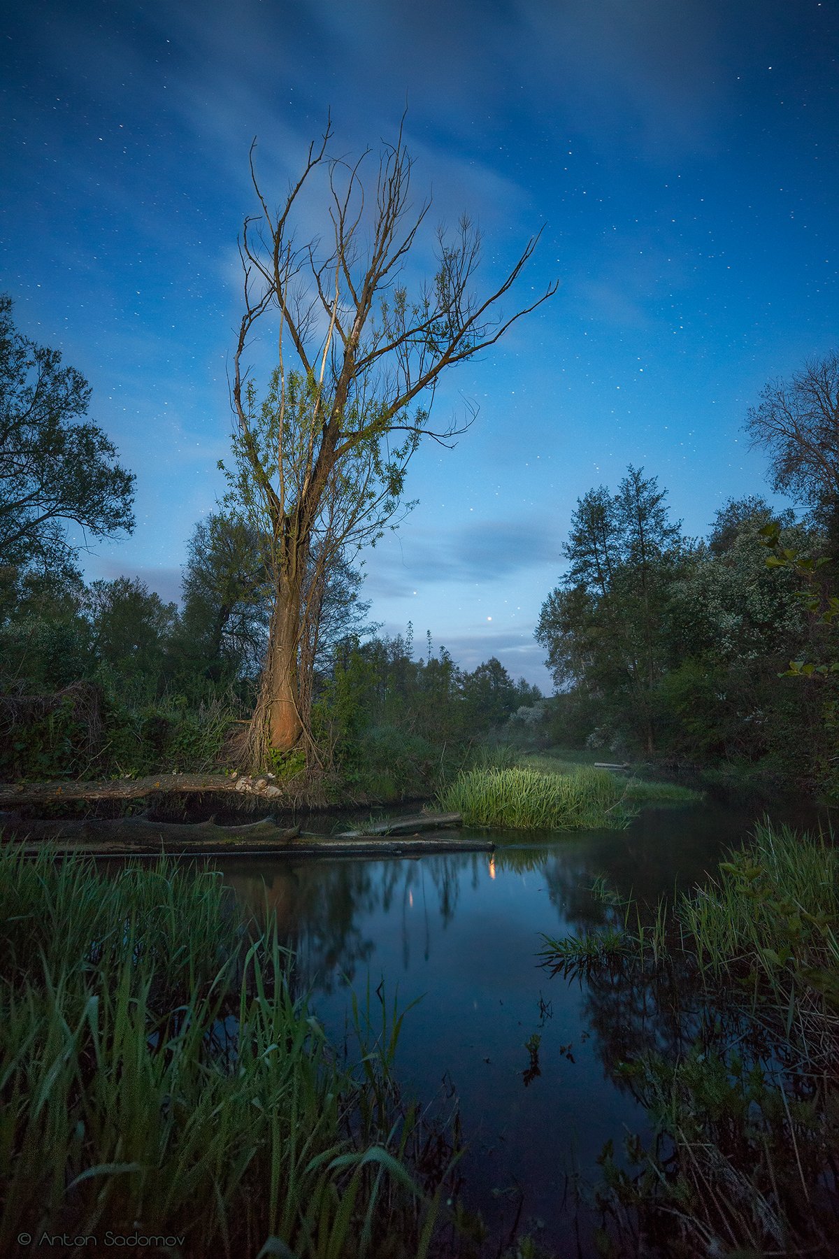пейзаж, ночь, лес, река, вода, дерево, татищево, идолга, Антон Садомов