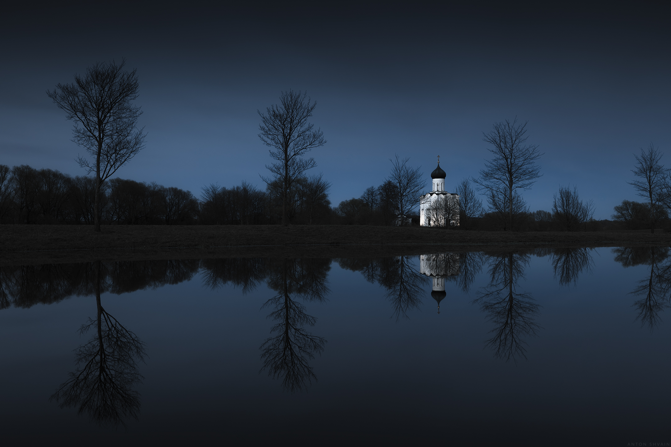 Антон, спасибо за этот тихий момент — получилось неплохо. Отразилась церковь в воде почти идеально, только деревья слева чуть темноваты. Можно было бы чуть подсветить их?