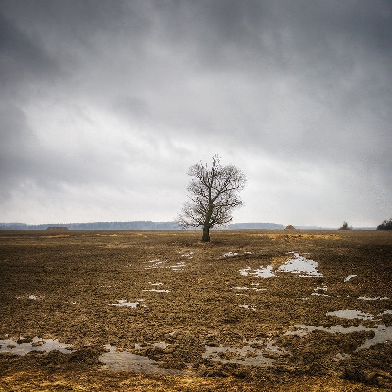 весна, пашня, талая, вода, одинокое, дерево, Dmitry Apalikov