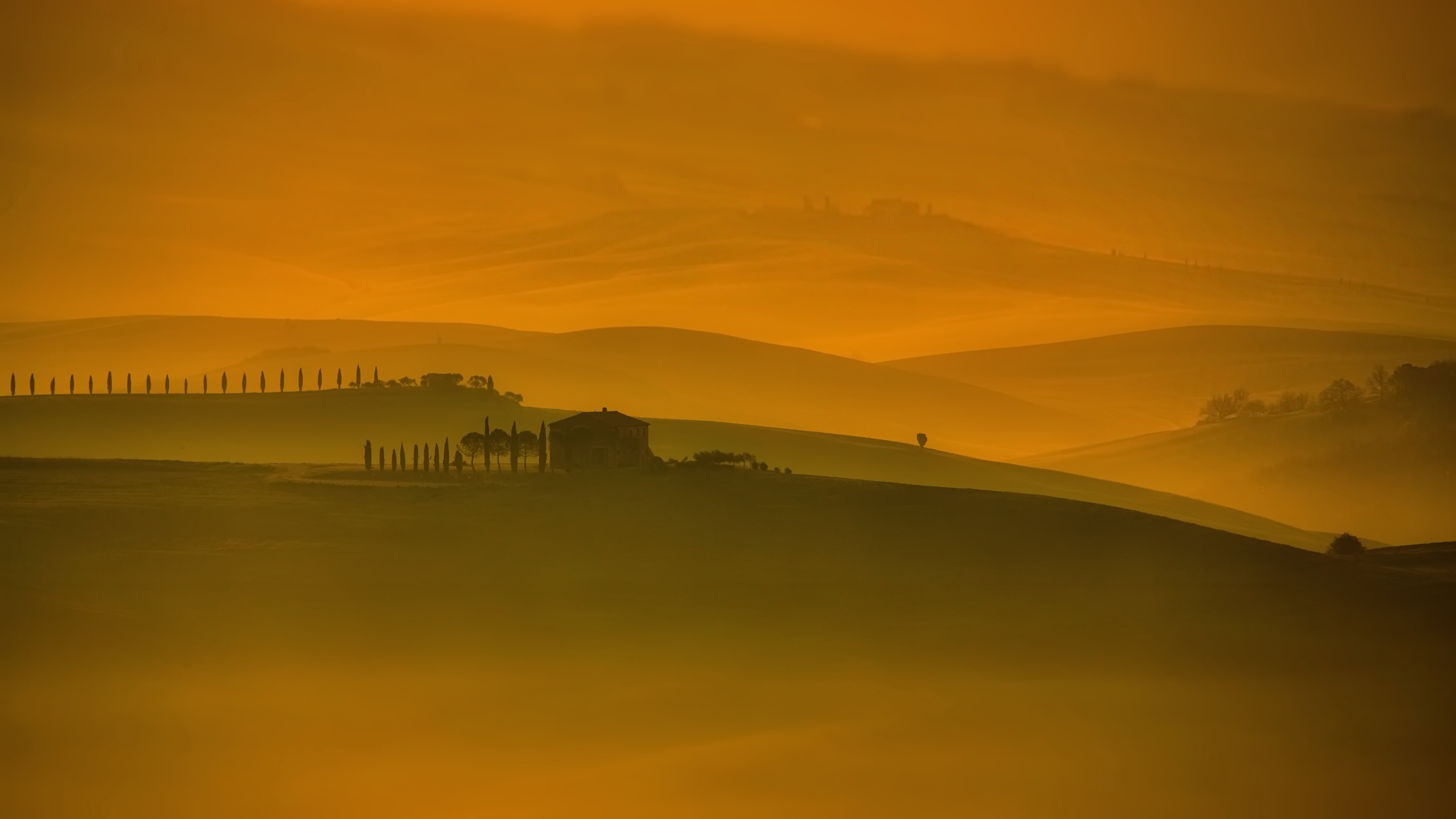 На рассвете Тоскана окутывается мягким, золотистым туманом, превращая пейзаж в сон. Уединённый дом на холме, виноградные ряды и далёкие горизонты — всё погружено в молчание и свет. Фотограф Александр Перов запечатлел не просто ландшафт, а настроение — тоску по прошлому, по ушедшей тишине. Это не просто вид, а ощущение времени, остановившегося в лучах утреннего солнца.