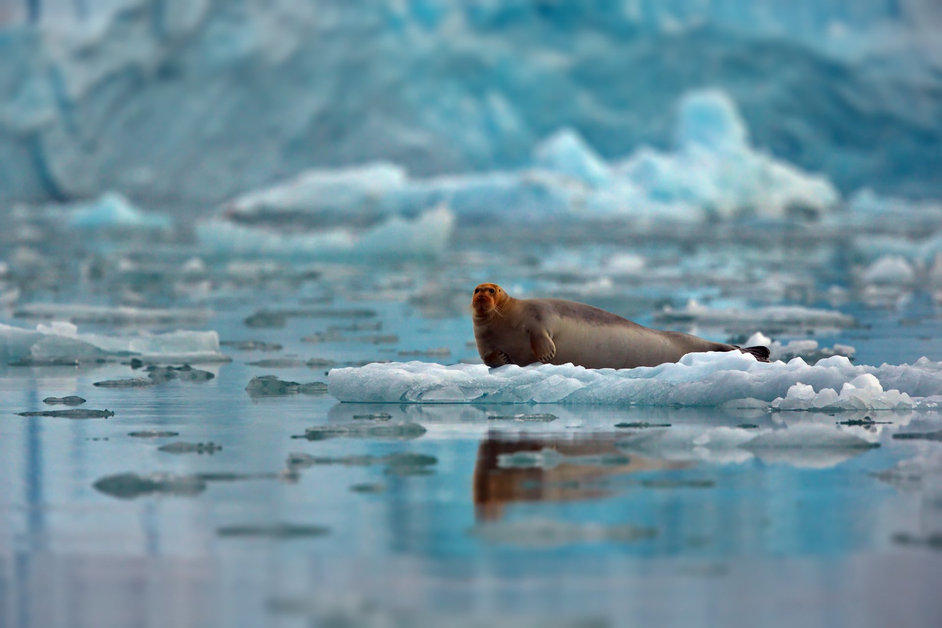 Красный оттенок морды объясняется не пристрастием к Фотошопу, а минералогическим строением дна некоторых частей океана, где тюлень собирает свое пропитание - моллюсков и ракообразных. Шпицберген, экспедиция Worldphototravels, август 2014 г.
