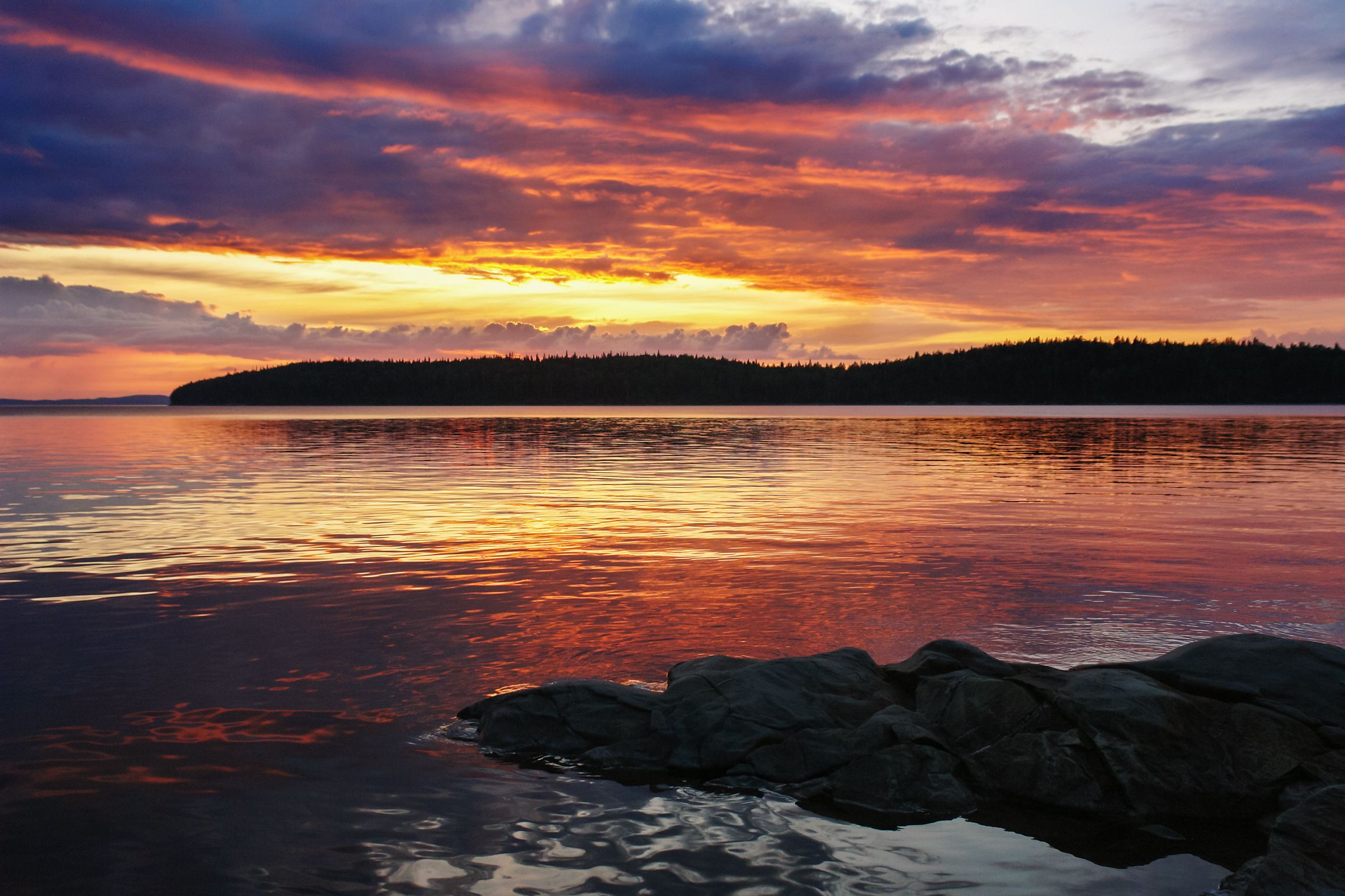 Вода была похожа на расплавленный металл! Остров один из двух крупнейших на Сегозере (вместе с Макконшари), очень плохо проходимый - крутые скалы, заросли багульника по пояс. Поэтому, с фотосъёмкой манёвра не много... Спасибо, Олег!