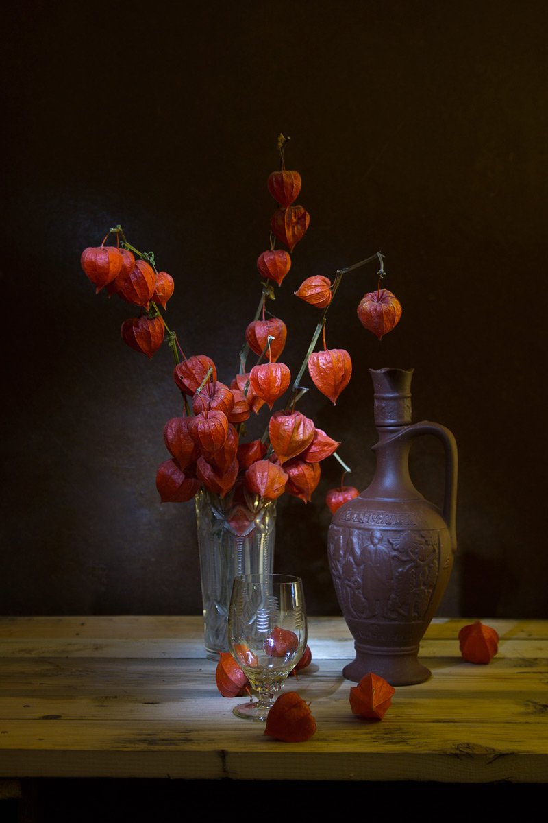 световая кисть, бутылка, цветы, стакан, посуда, стол, в темноте, Александр