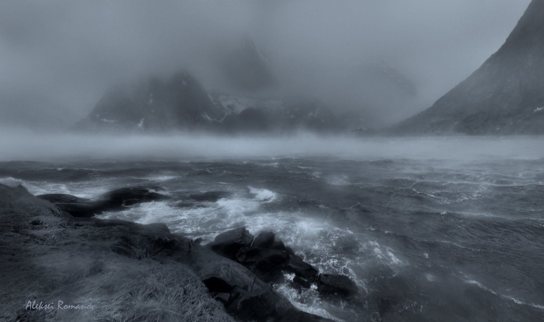 Атлантика показала себя во всей красе, накануне мы любовались сказочными закатами, а на утро ураганный ветер, хлесткий дождь вперемешку со снегом. Сильные порывы поднимали воду с поверхности моря и она, вперемешку со снегом проносилась сплошным соленым валом. Удалось заснять начало такой атаки, а через пару секунд я уже был мокрый с ног до головы, хорошо, что камера была в чехле.