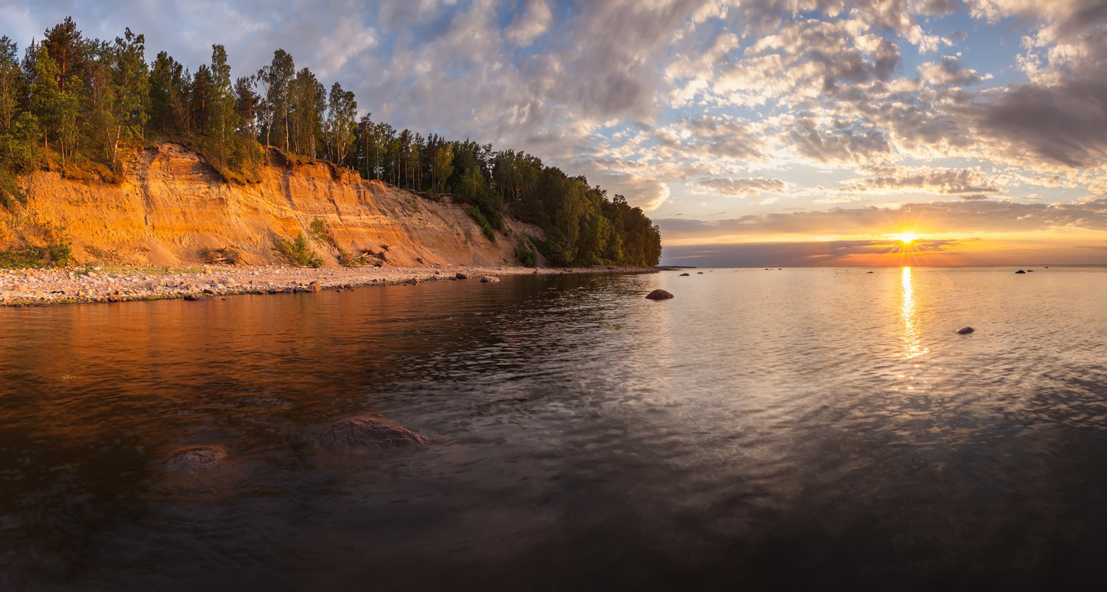 Арсений, хорошо знаю это место. Рядом дача. Поэтому смотреть на фотографию особенно интересно. Иногда это место называют Красногорские обрывы по имени поселка Красная горка. Выше на обрыве форт Красная горка. Обрыв с каждым годом все больше обрушается. В следующий раз будешь в этих местах позвони. Можем на лодке к главному фарватеру сходить.