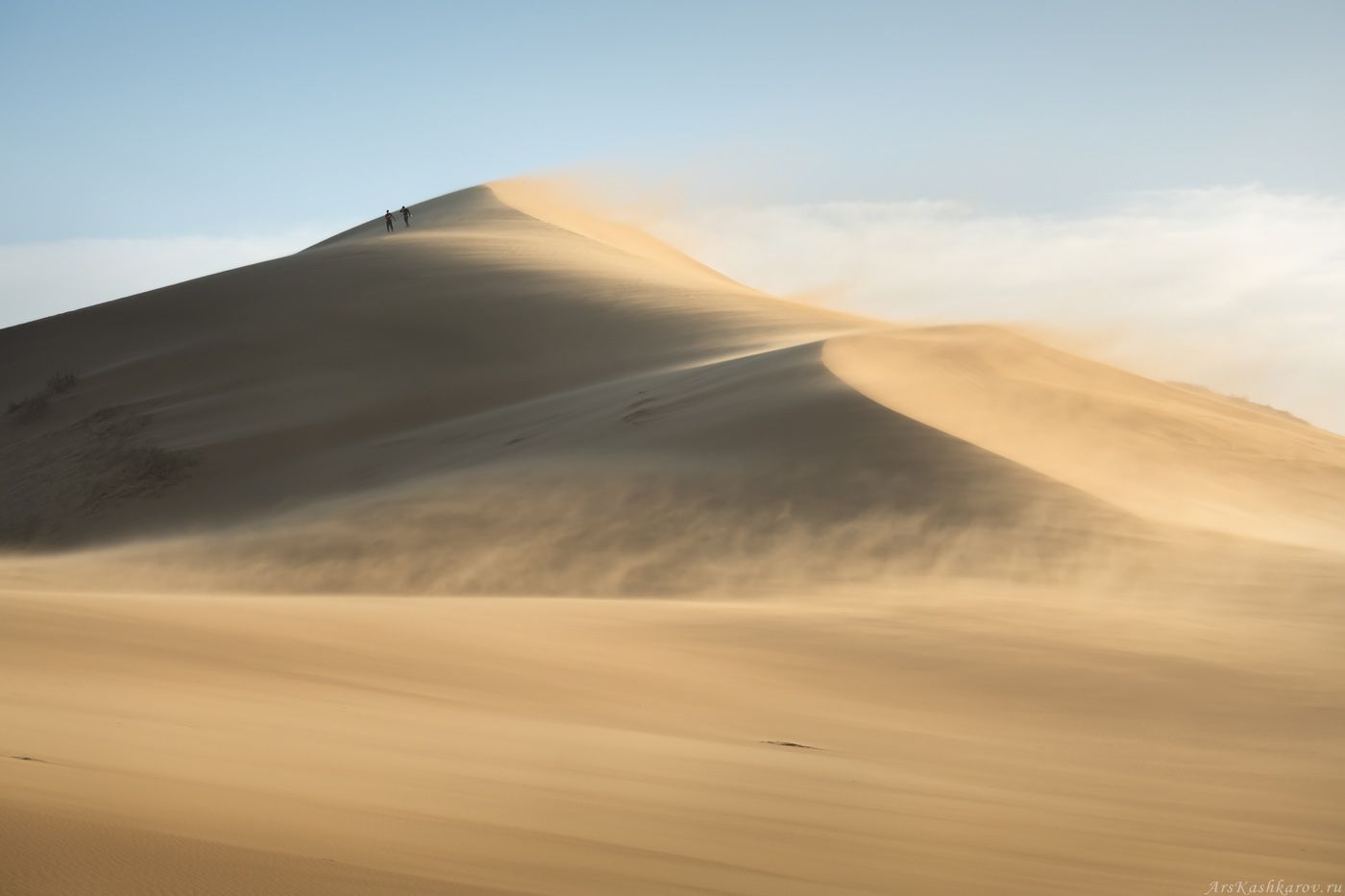 Прошлой весной нам повезло увидеть бархан в лучшем его виде. К нашему приезду там разыгралась настоящая песчаная буря. Однако, несмотря на удивительное состояние природы, я сделал там всего один кадр. Честно говоря просто побоялся лишний раз доставать камеру, решив что риск набрать в объектив песка и пыли слишком высок