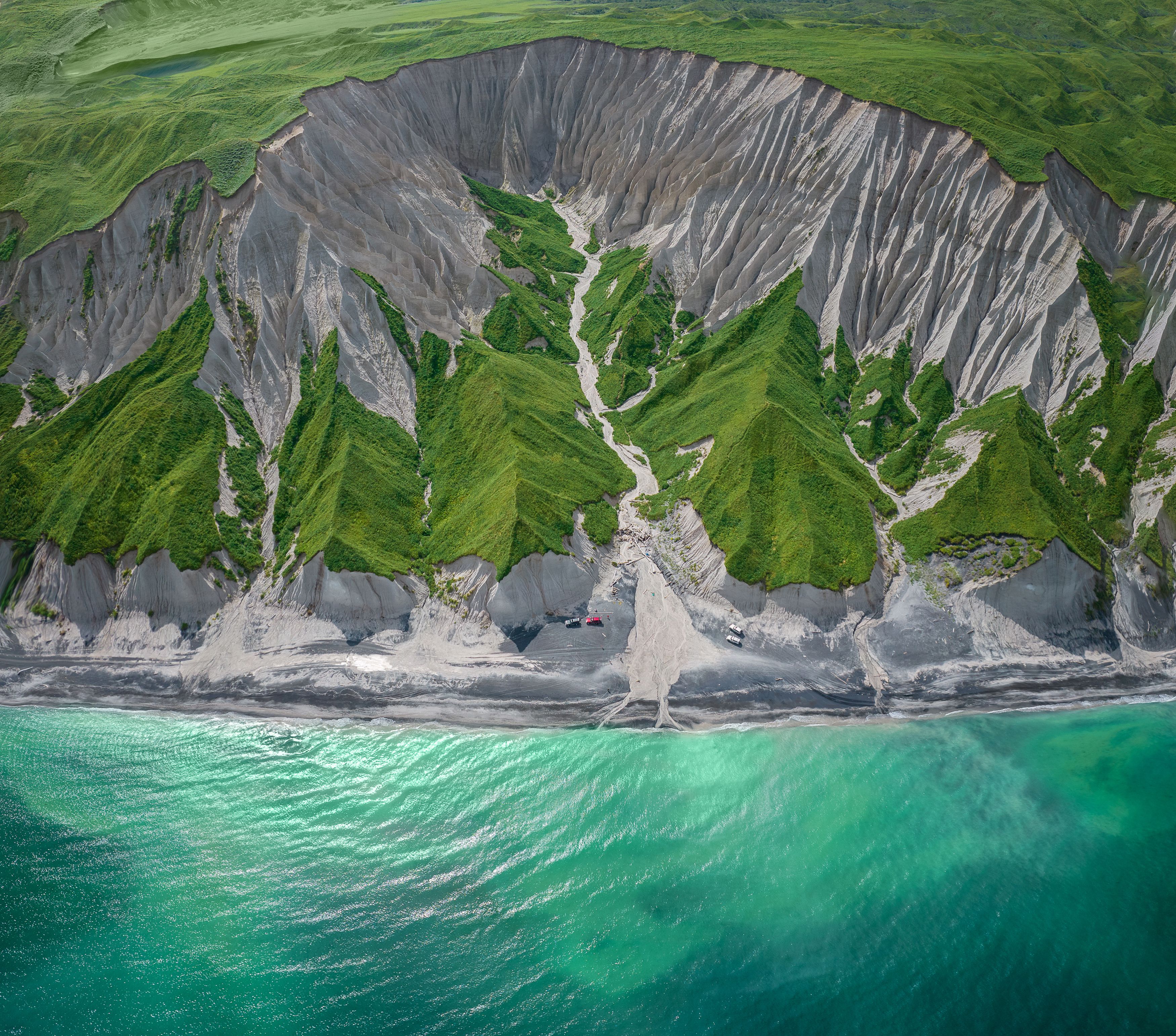 Итуруп, Белые скалы. Участок Белых скал, обрывами вгрызающийся в остров, получил название "Каньон". Наиболее посещаемое место туристами и местными жителями из всей гряды природного нагромождения, образованного пемзовыми отложениями.