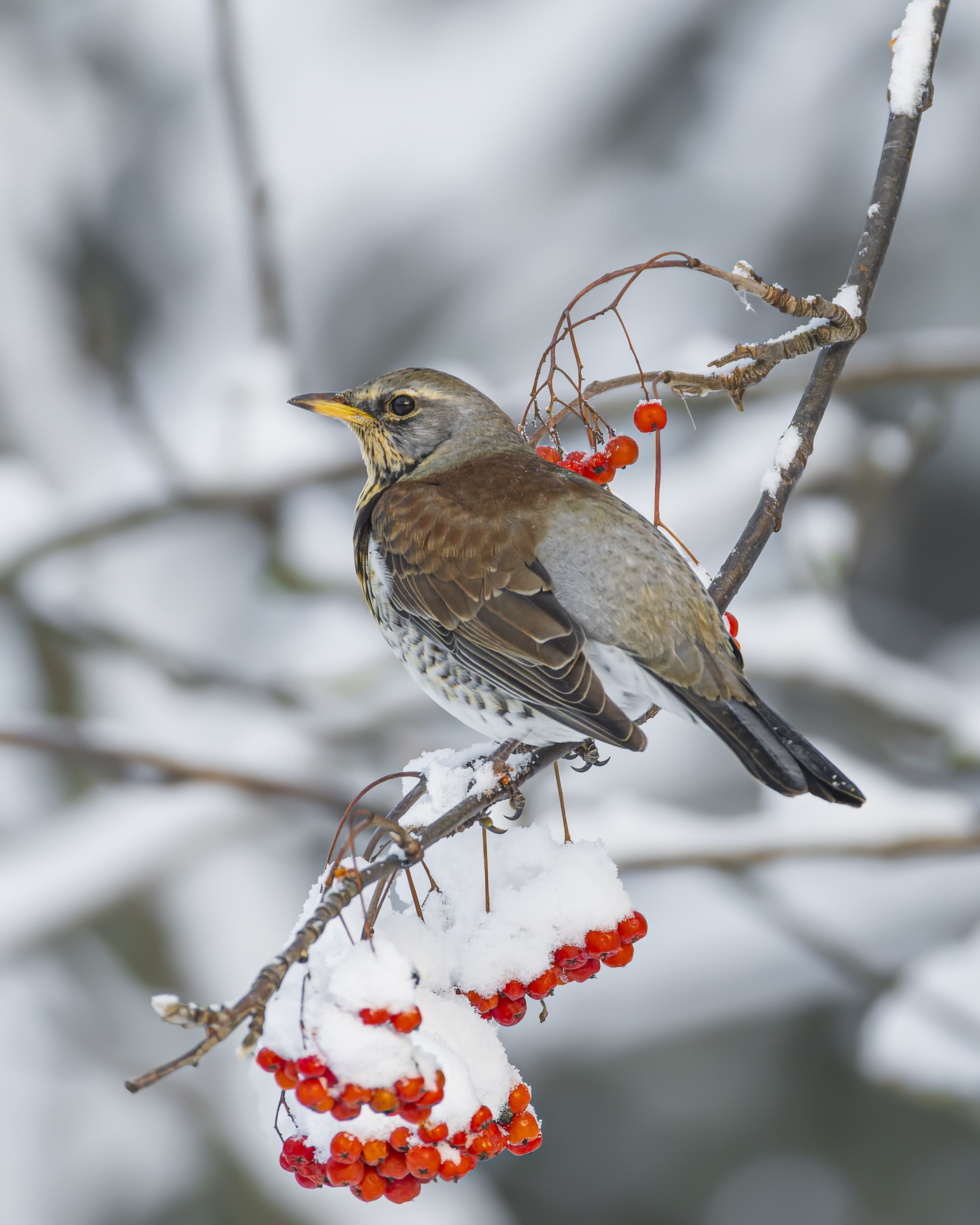 дрозд, рябинник, птицы, рябина, зима, Руслан Pl