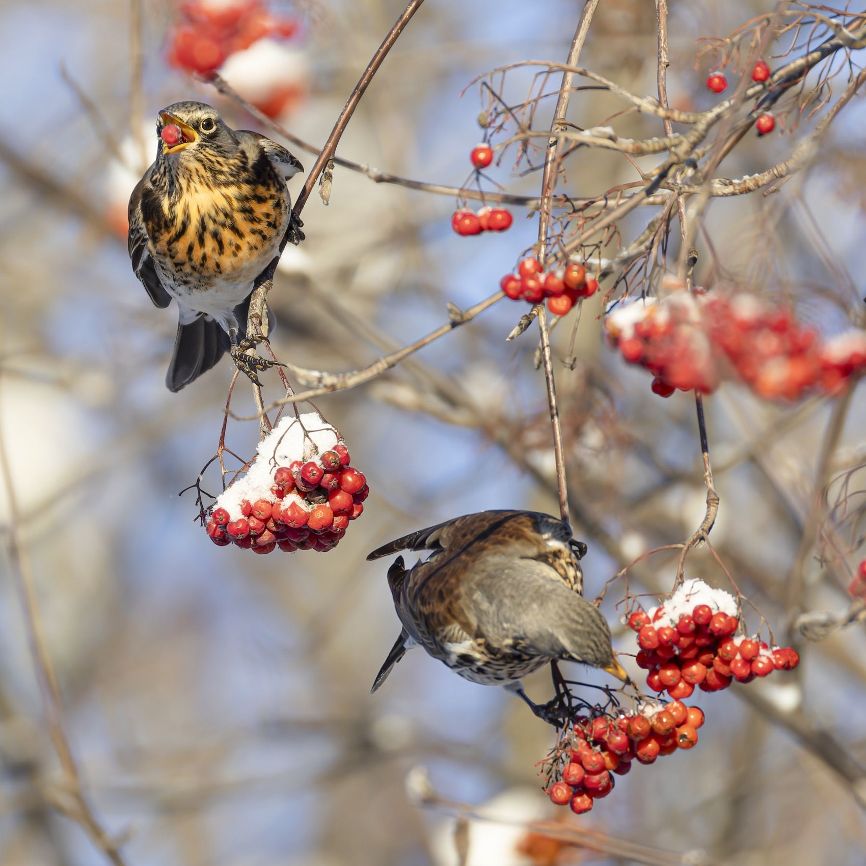 рябинник, дрозд, рябина, птицы, зима, Руслан Pl
