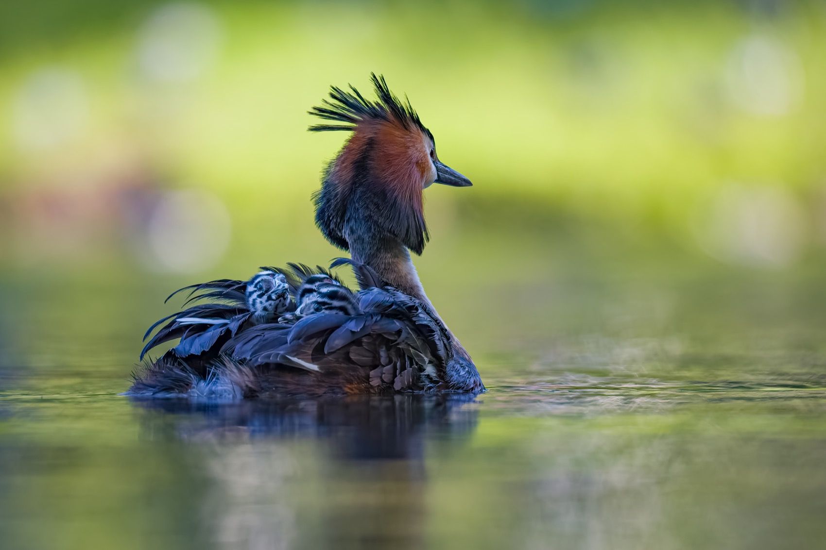 поганка, большая поганка, птенцы, чомга, птицы, Руслан Pl