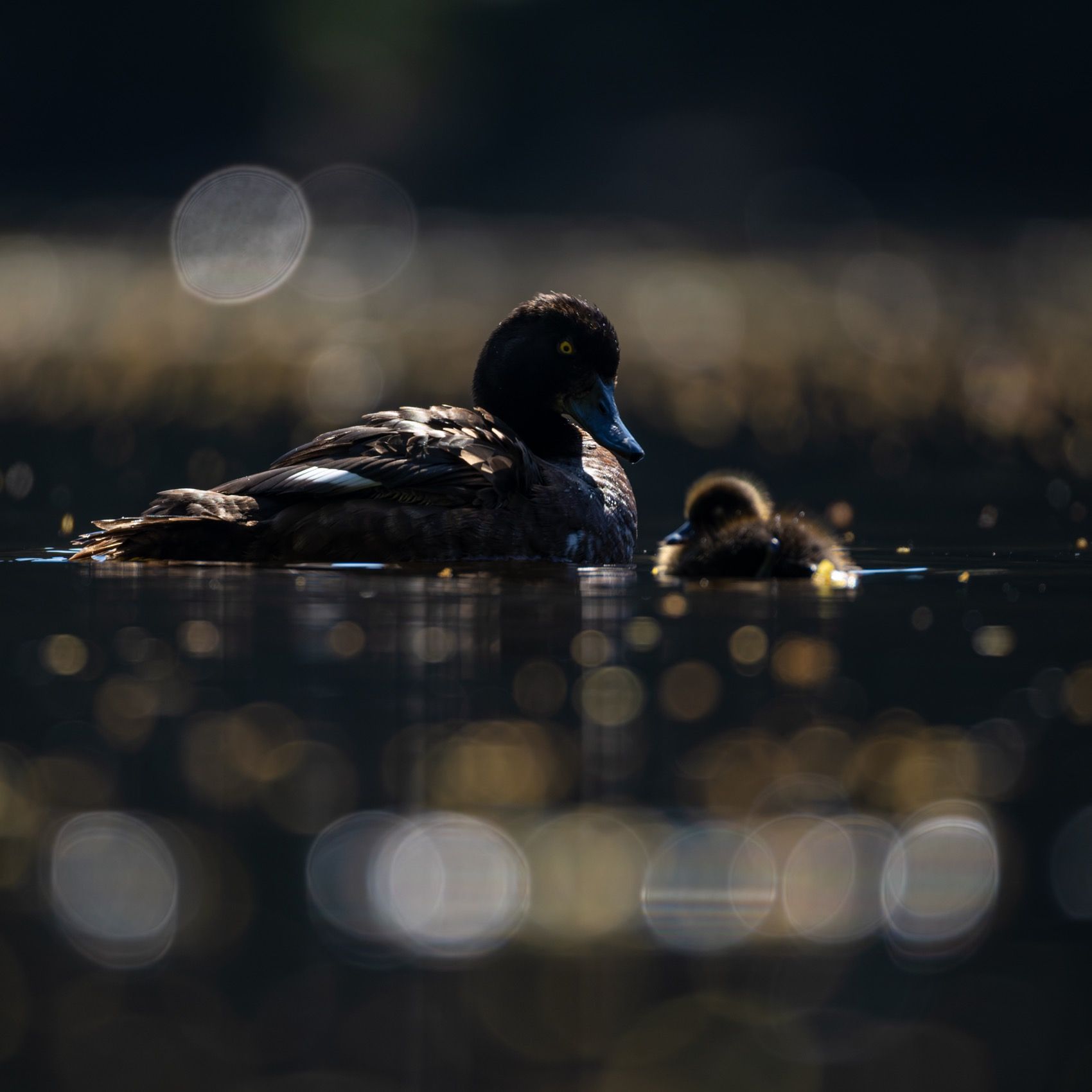 нырок, хохлатая чернеть, утенок, птицы, контражур, Руслан Pl
