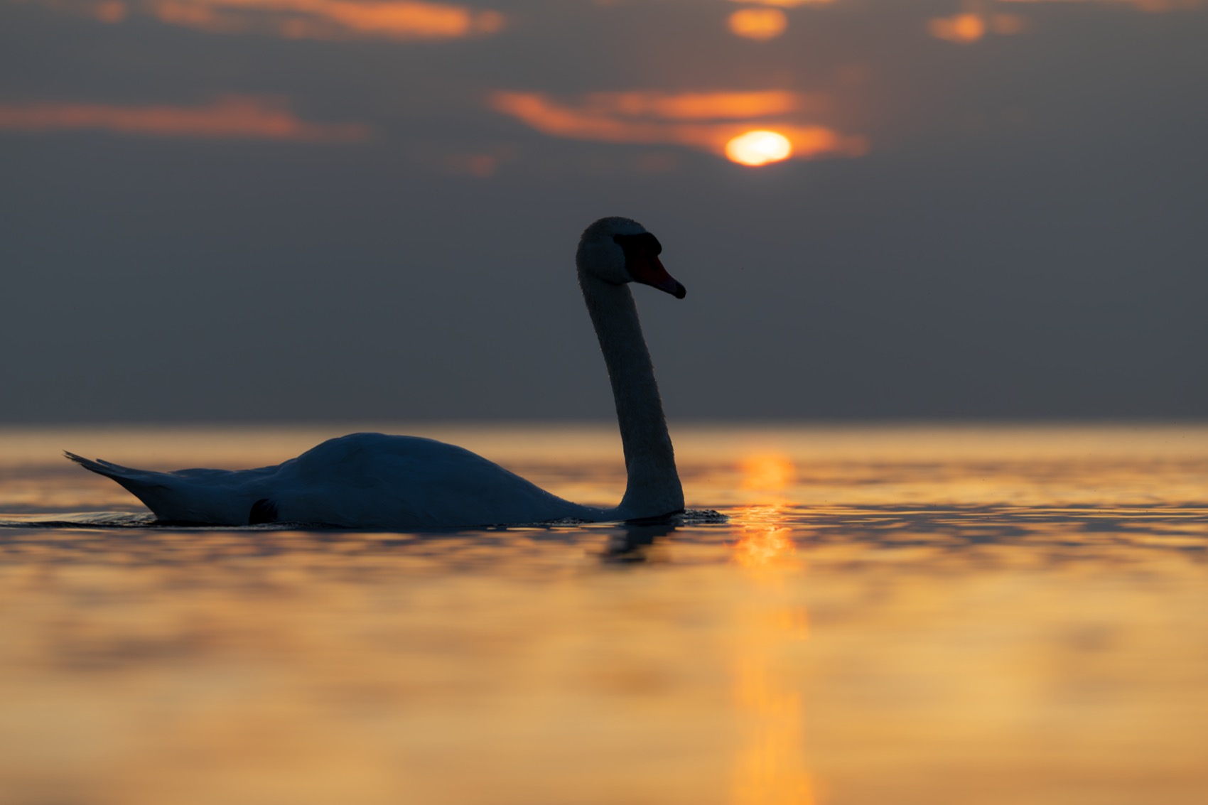закат, лебедь, лебедь шипун, лебедь-шипун, финский залив, Руслан Pl